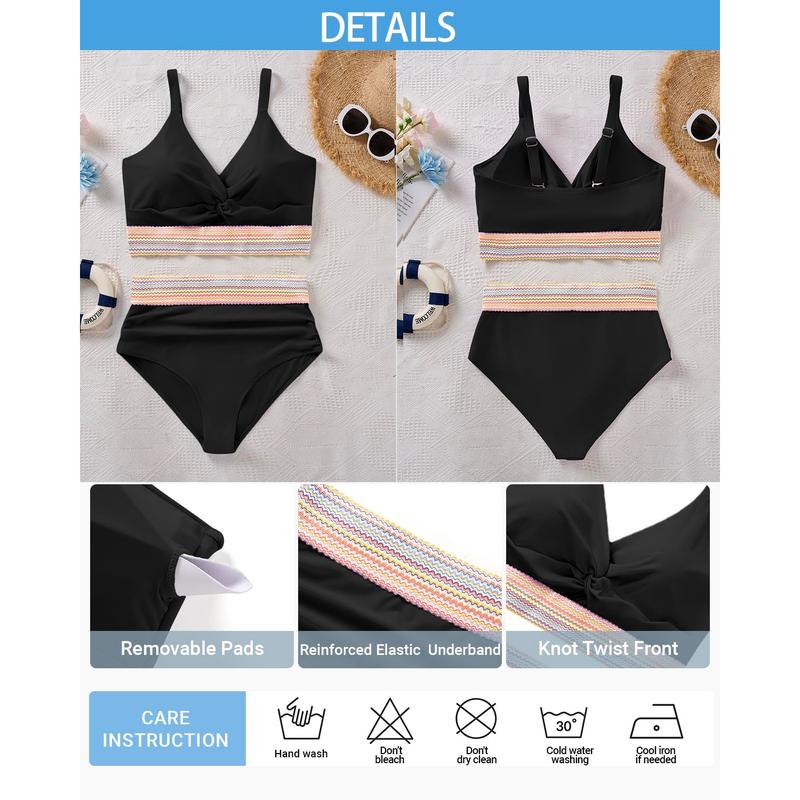 ·Plus Size two Piece Bathing Suit: This sleek blue two-piece swimsuit combines style and comfort with a chic knot twist top and a flattering high-waisted bikini bottom.