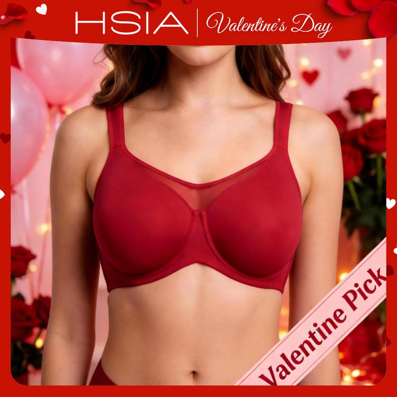 ·Full Coverage Bras for Women: The HSIA minimizer bras feature soft, two-ply cooling fabric that is gentle on your skin, ensuring all-day comfort. The stylish mesh detailing at the center front offers a sexy look while providing lift and coverage, keeping everything in place without spillage.