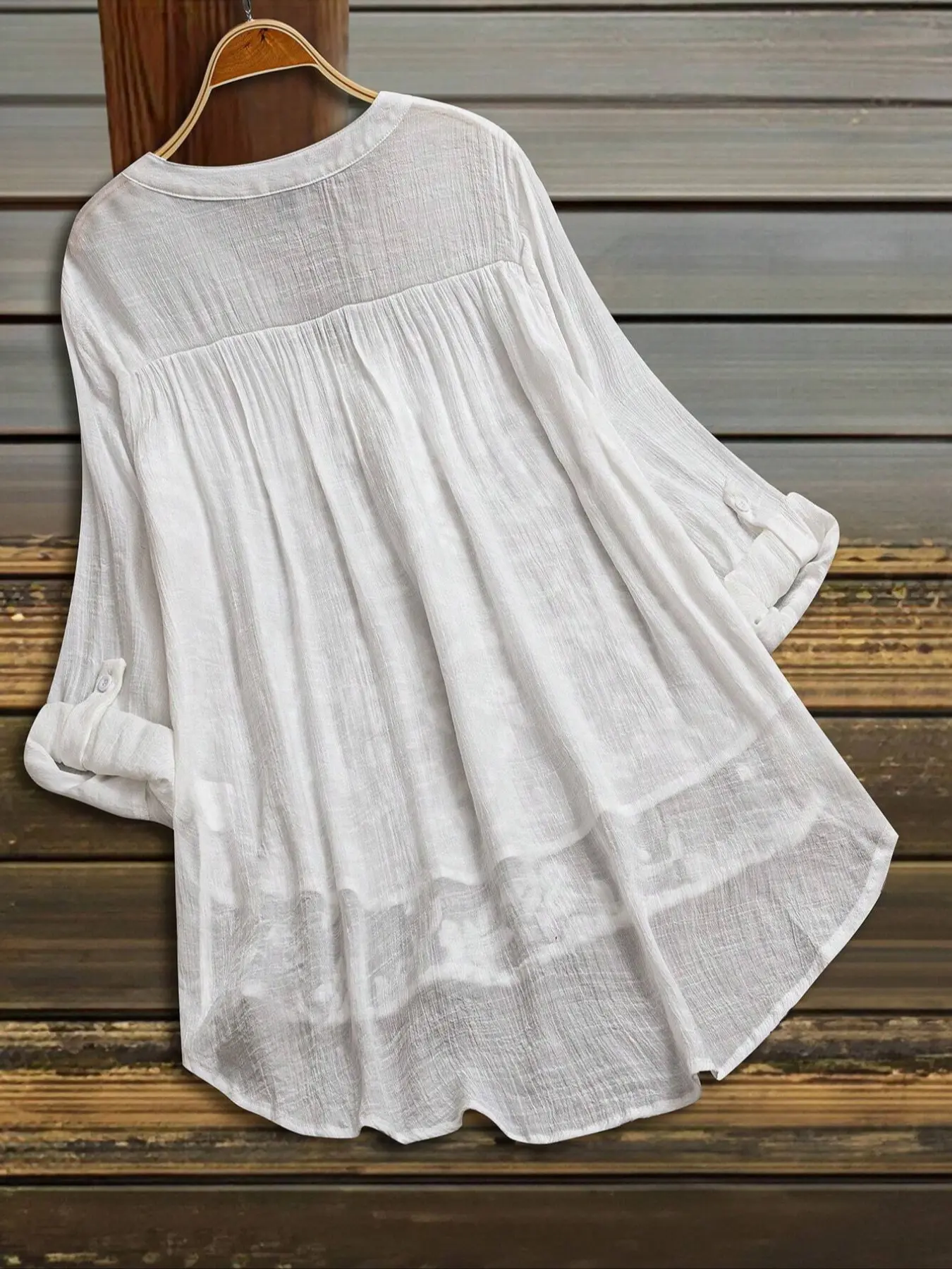 5. Plus Size Solid Color Long Sleeve V Neck Casual Shirt Blouse, Fashionable Comfortable Fit for Daily Wear, Perfect for Layering and Leisure