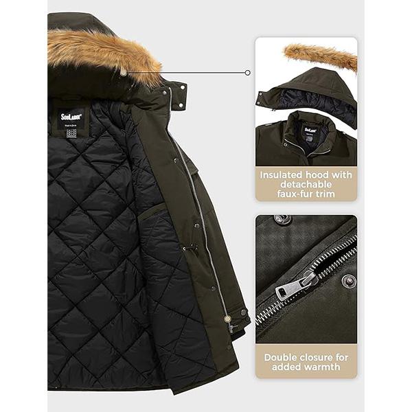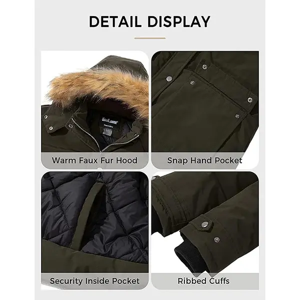 ·Windproof & Waterproof -- With Teflon coating finish and taped seams, this 10000mm waterproof winter overcoat is able to protect you from heavy rains, dry snows during bitter cold days and keeps your body dry and comfortable. Adjustable cuffs and protective chin guard with snap closure and drawstring at collar make it more expandable and windproof as a daily wear