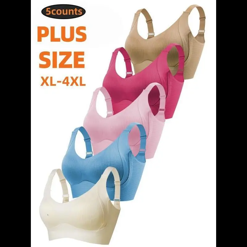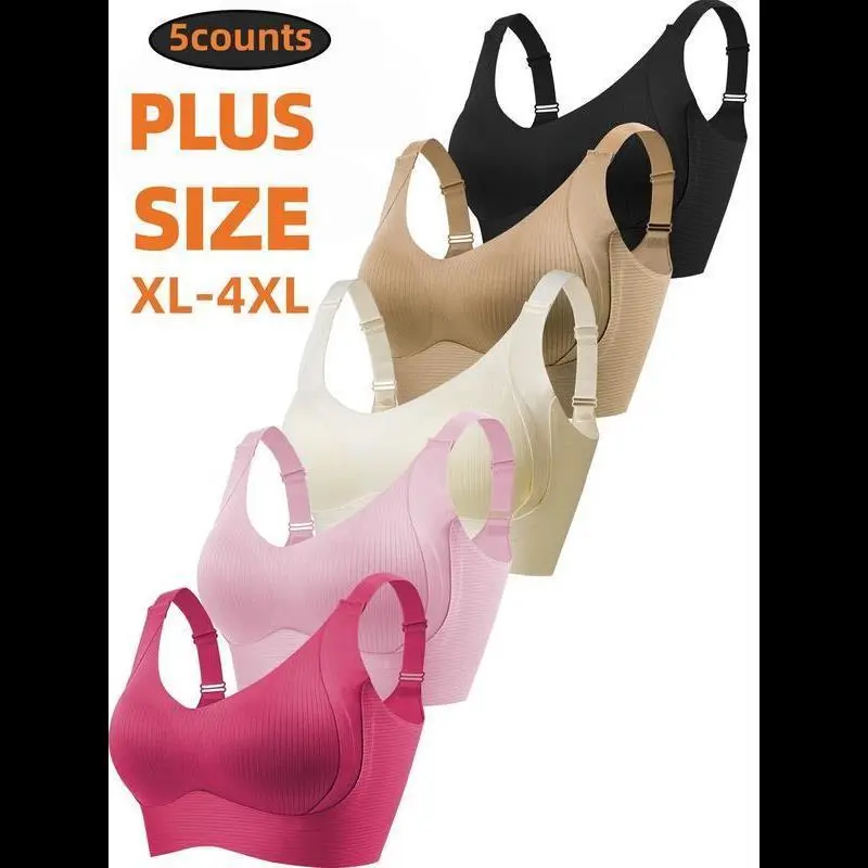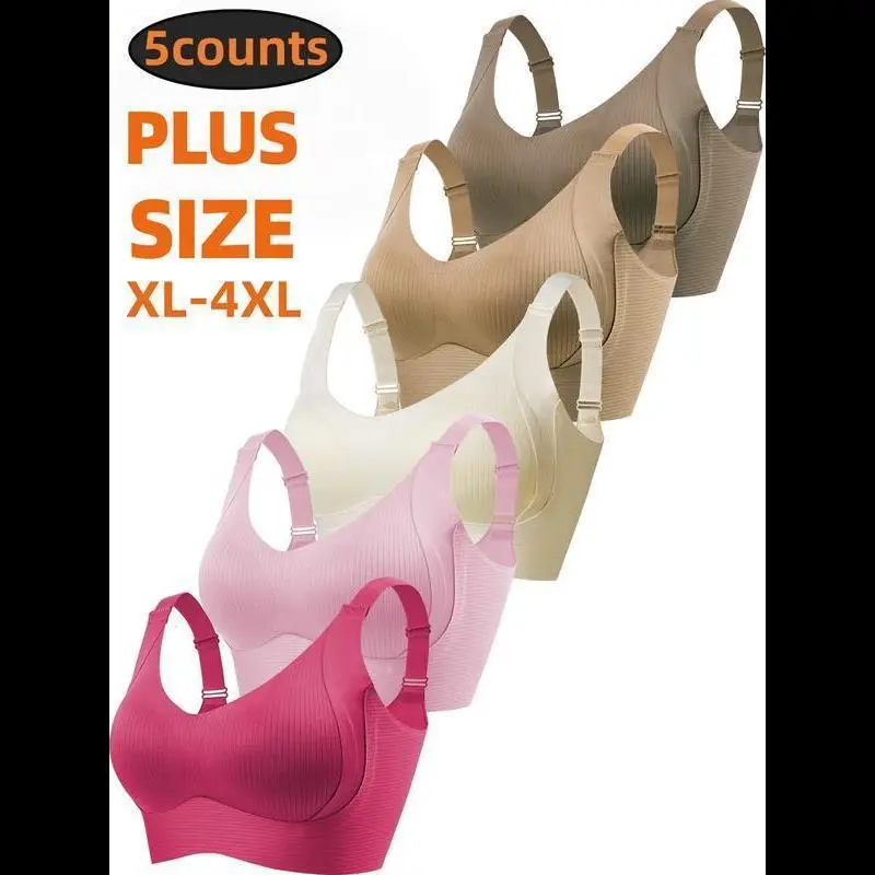 5-Pack Plus Size Comfortable Seamless Bras, Sizes 1XL-4XL, Designed for Women, Wire-Free Push-Up Style, Suitable for Daily Wear, Maximum Comfort. Smooth Traditional