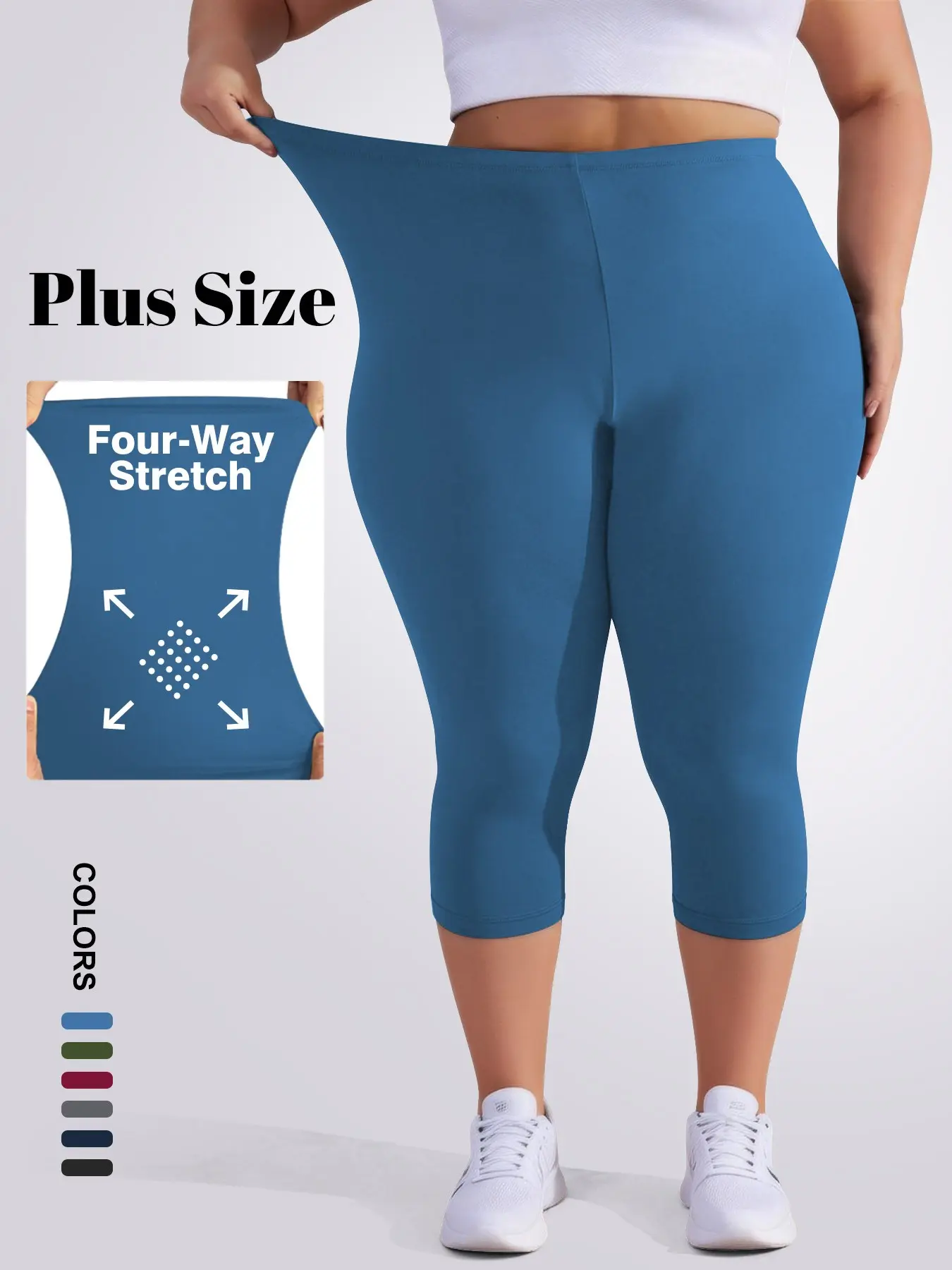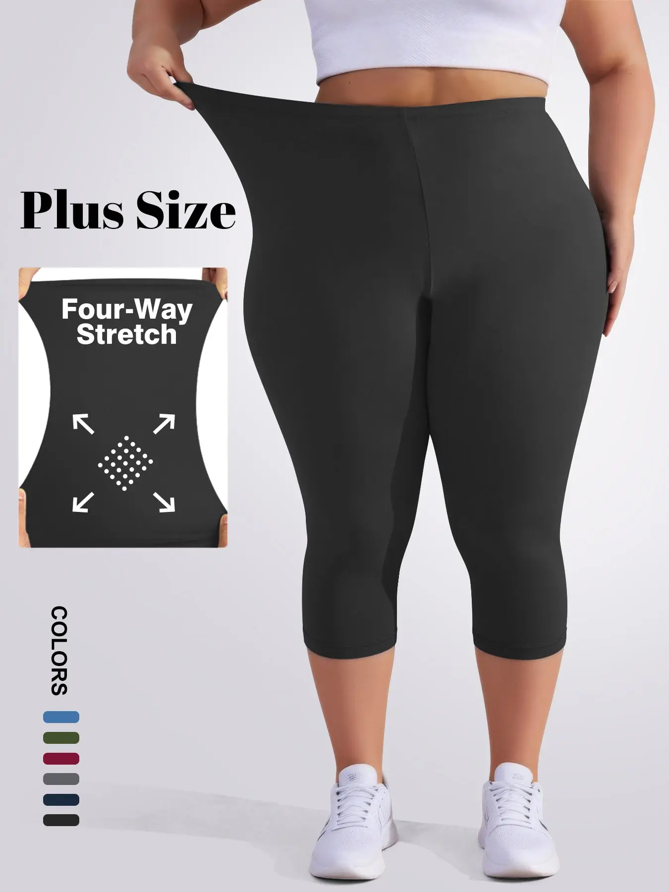 5. Plus Size Women's 3/4 Leggings, Stretchy Design, Soft Fabric, Suitable for Summer Wear, Solid Color Style for Comfort and Style