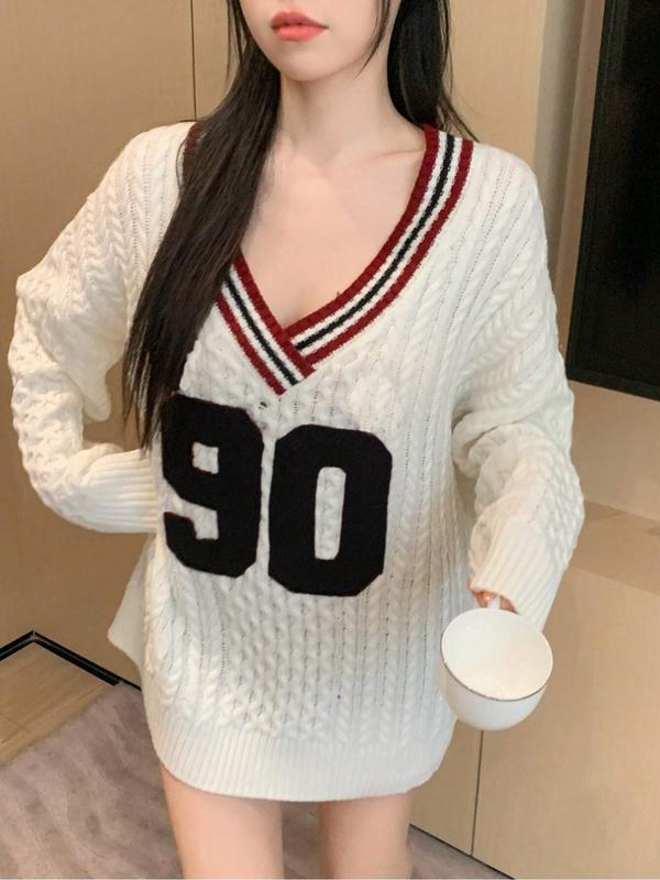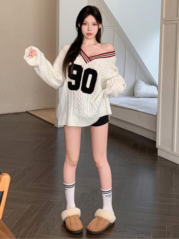 Women's Plus Size Knitted Sweater, Casual Loose Fit V-Neck Pullover, Long Sleeve Drop Shoulder Design for Fall/winter #plussizefashion #oversizedlongsleeve #womensclothingtiktokshop #womenssweatshirtset #womenssweats #plussizewinterfashion #plussizefleecelinedtights #girlssweater #oversizedjumper #plussizefashioninspo