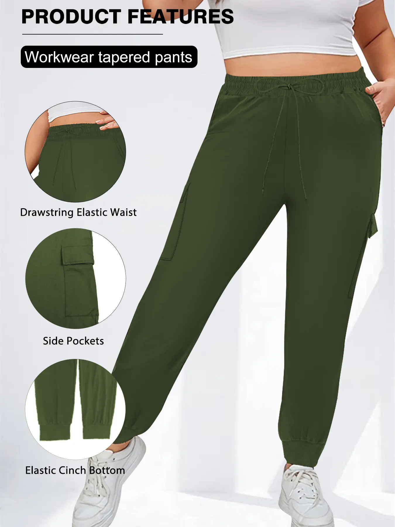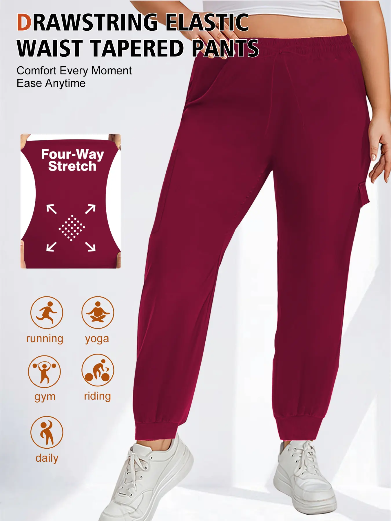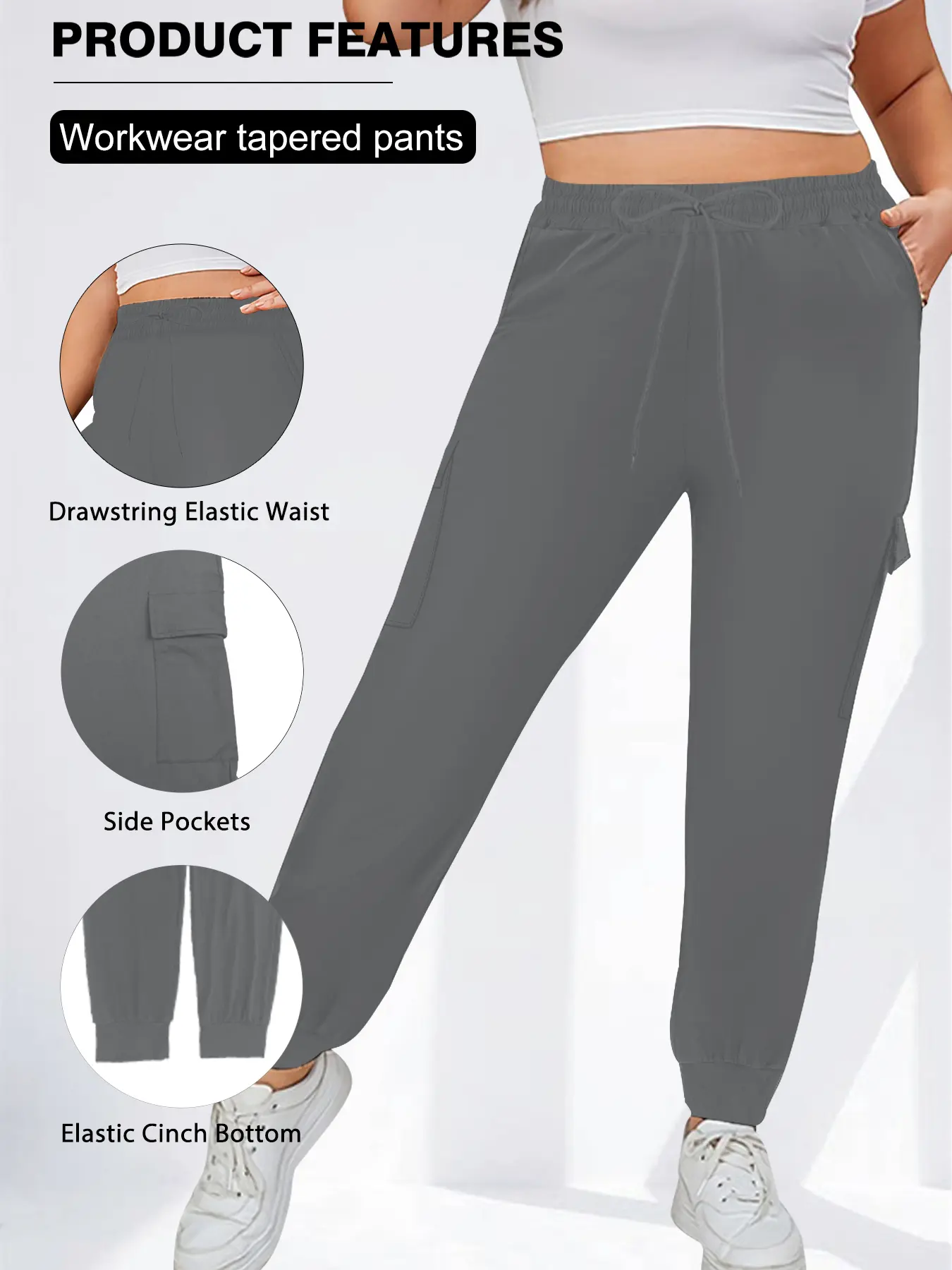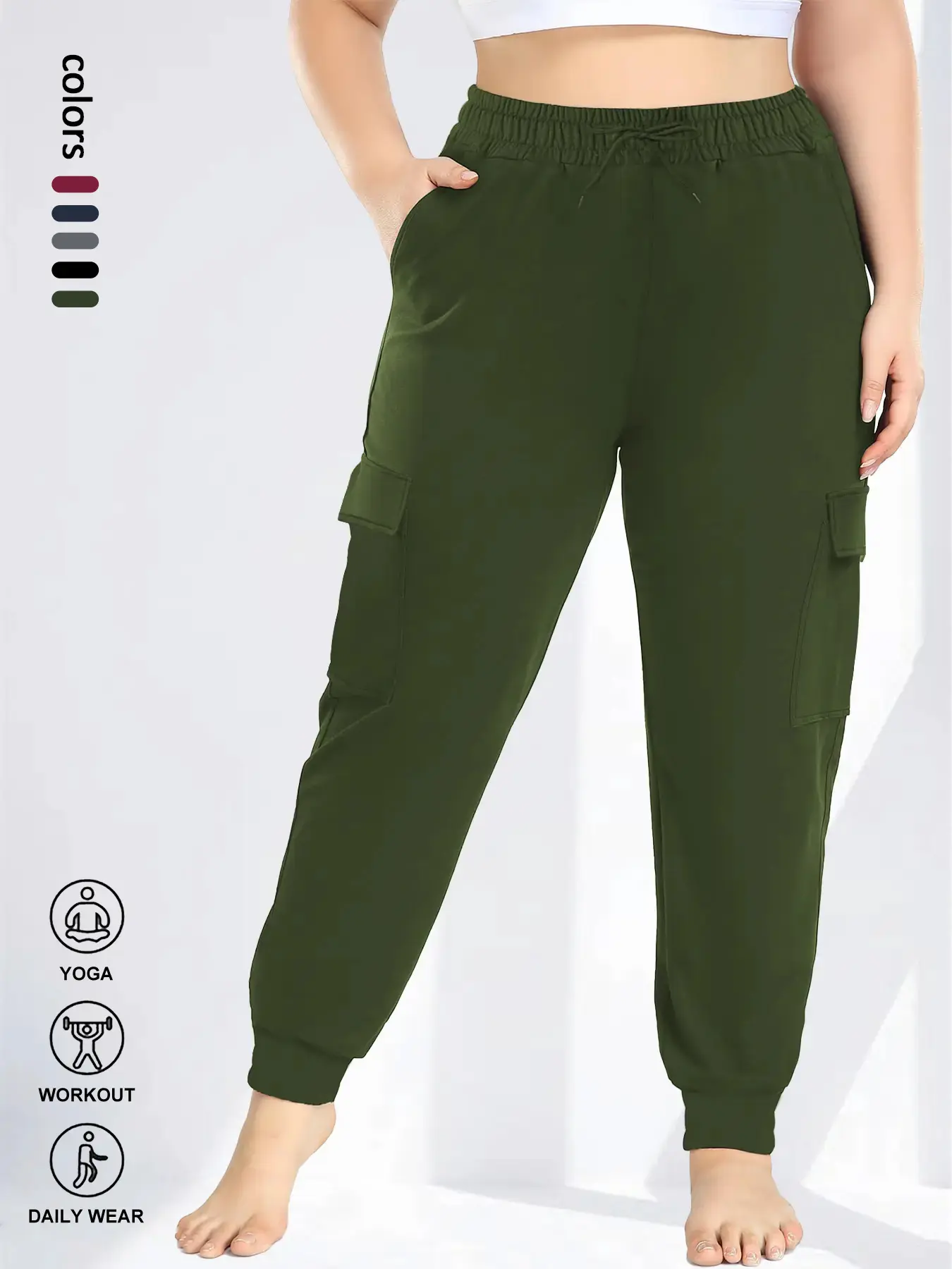 Plus Size Women's Jogger Pants with Cargo Pockets, Adjustable Waist with Drawstring, Comfortable High-Waisted Casual Trousers, Casual Sports Trousers