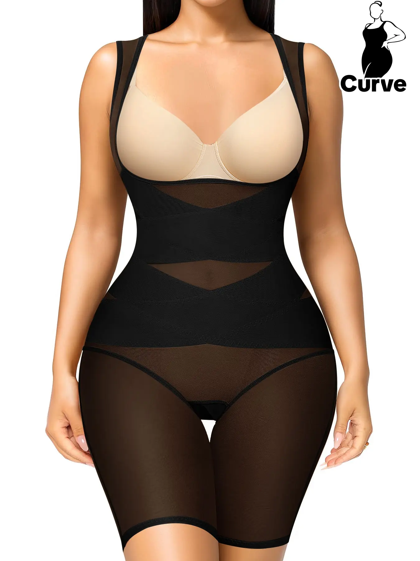 【Body Shaping】: Features a high-elastic mesh fabric that effectively wraps and tightens loose areas for a sculpted look.