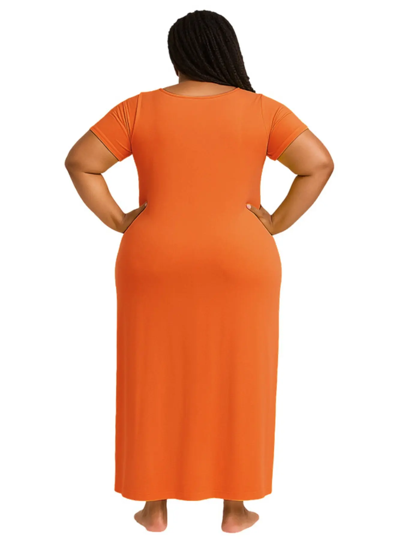 5. Plus Size Women's Solid Color Dress, Sexy Round Neck Short-Sleeved Long Dress, European and American Summer New Arrival, Casual Style
