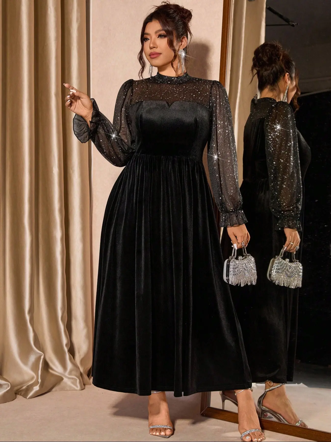 Plus Size Women's Mesh Velvet Elegant Bubble Sleeve Dress #dress #elegantdress #spotlightfinds #tiktokshop #tiktokshopholidayhaul