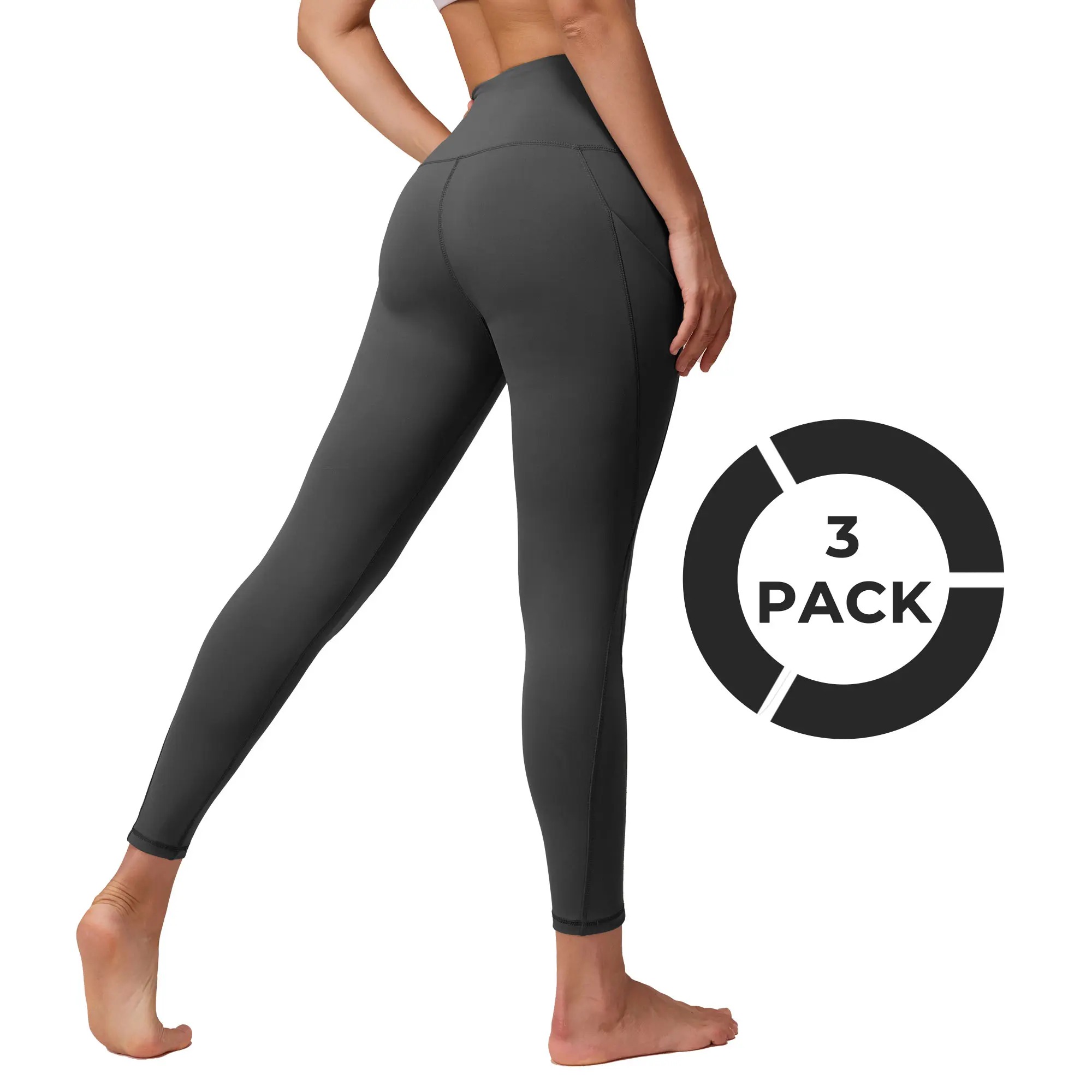 SHOWITTY High Waisted 3 Pack Women's Yoga Pants with Pockets – Plus Size Stretchy Leggings