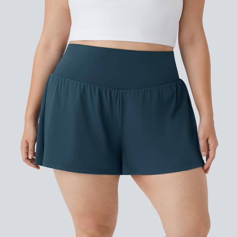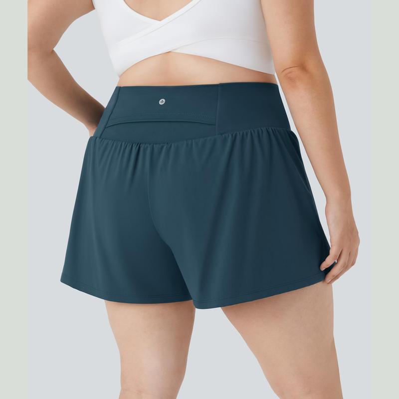 Halara Super High Waisted Back Pocket & Side Hidden Pocket 2-in-1 Yoga Plus Size Shorts 4''-Longer Length