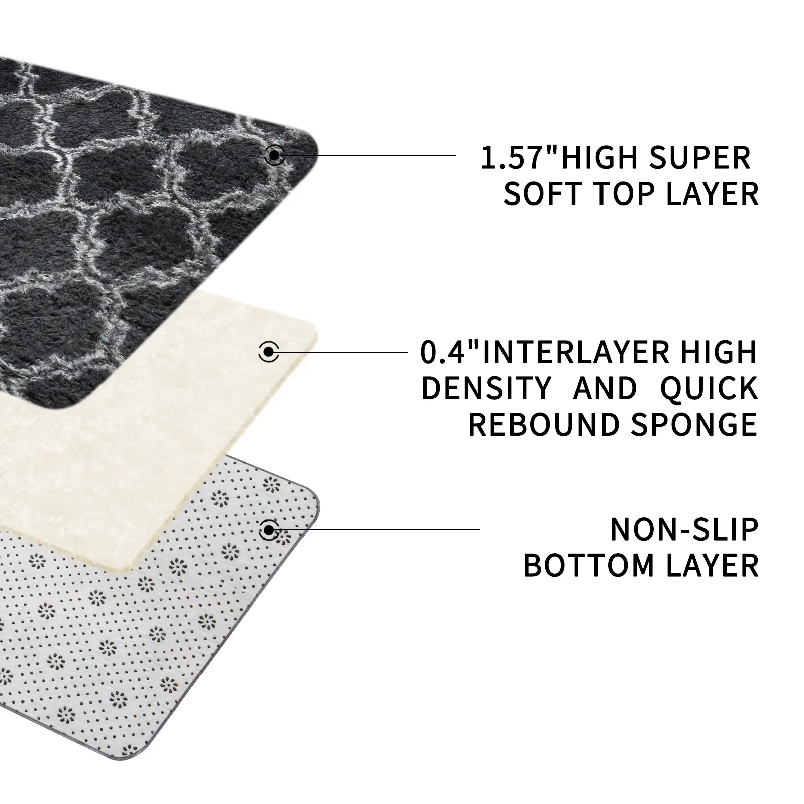 【Non-Slip Bottom Design】Equipped with thousands of plastic beading dots, this rug provides excellent friction against the floor, ensuring it stays securely in place. The non-slip bottom design is safe for all types of flooring and prevents the rug from sliding.