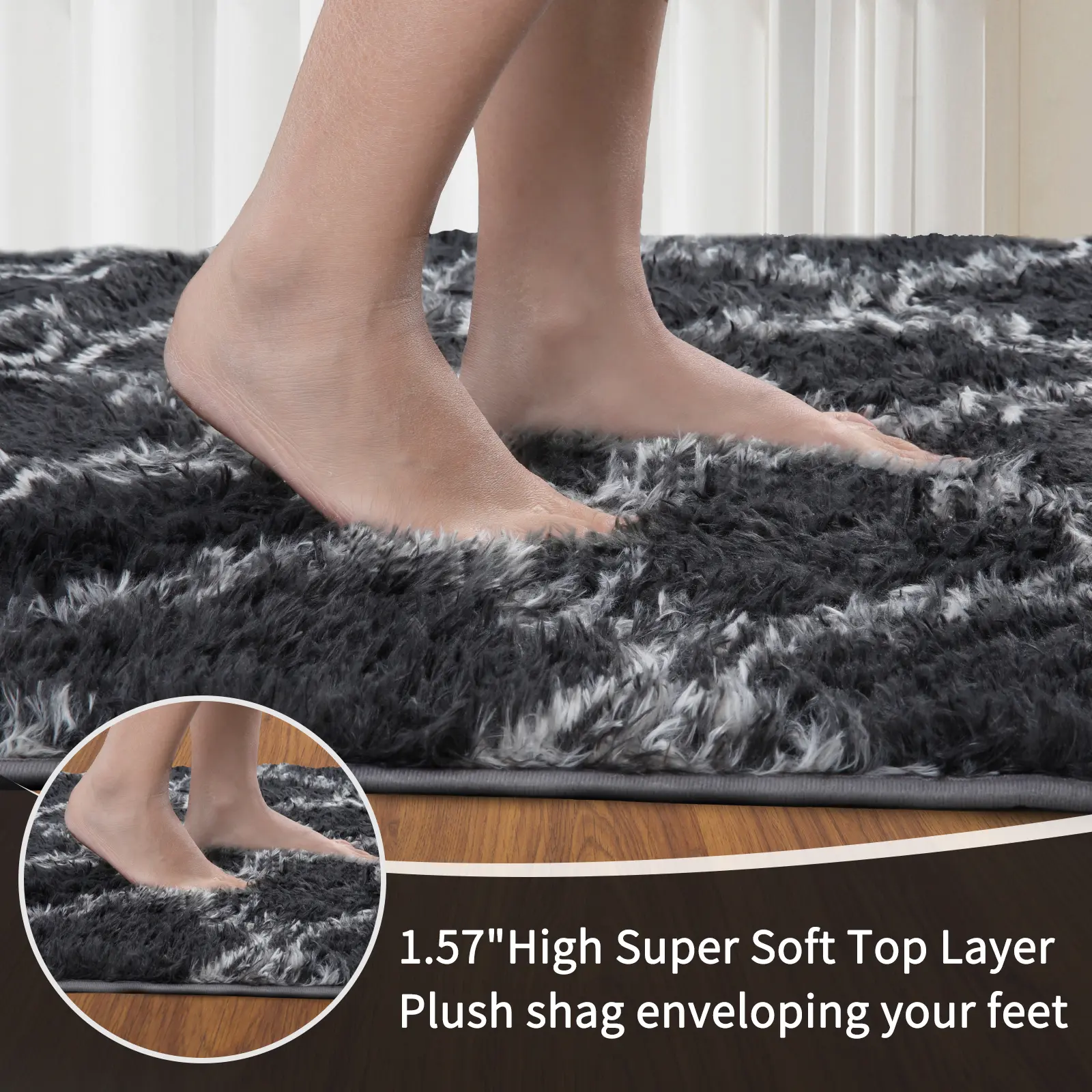 【Super Soft Feeling】The Area Rug is crafted from premium fiber material, offering a luxurious and velvety texture that effectively absorbs dust. Its middle layer features high resilience sponge to reduce foot pressure and enhance overall softness, making it perfect for lounging or playing games with family.
