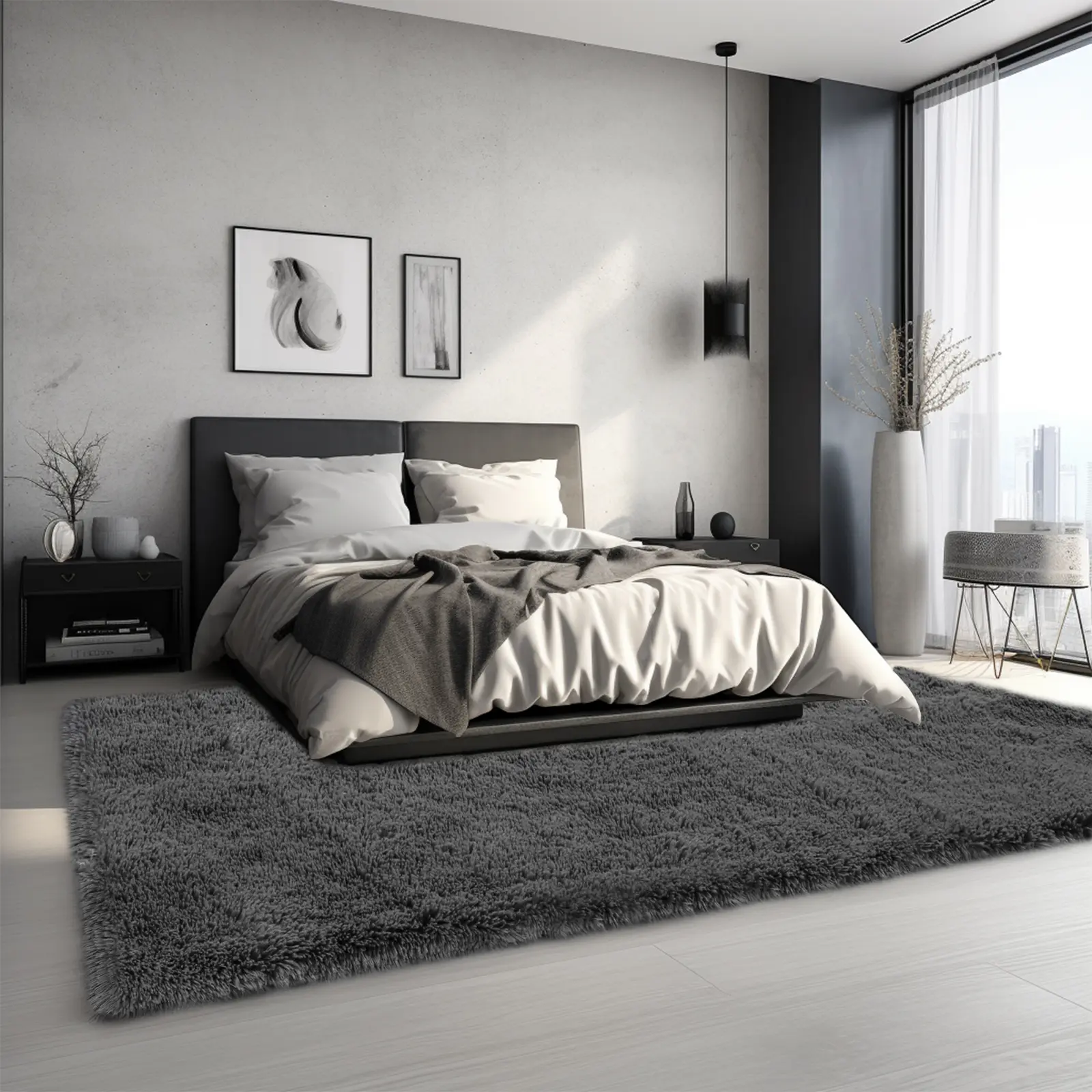 5. FAMVAL Large Size Plush Rugs Big Fluffy Area Rug Non-slip Soft Shaggy Carpet Mats for Livingroom Bedroom Nursery Home Decor Dark Gray Christmas gifts