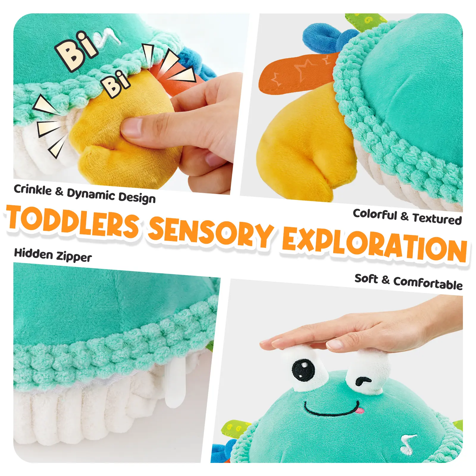 ·3-in-1 Multifunctional Design: Combines music playback, interactive recording, and crawling guidance into one core feature. The adorable crab design features vibrant colors to stimulate visual development. It serves as both an independent play companion and a fun tool for parent-child interaction, supporting babies through their critical crawling stage. Suitable for 1-3 year olds, it's a practical baby sensory toy you can buy with confidence.