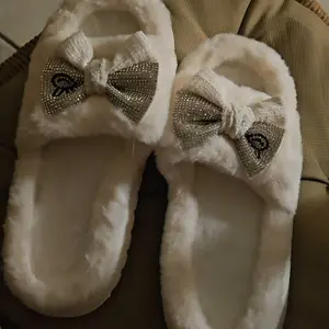 I LOVE THESE SLIPPER SO MUCH!! I got the white with the rhinestone bows & let me tell you, they’re SO comfy & I AM IN LOVE WITH THE FACT THAT THEY HAVE SOLES ON THE BOTTOMS!!! I can wear them outside, to take my kids to school, etc. & stay in comfort! After back surgery these are a must have for me!