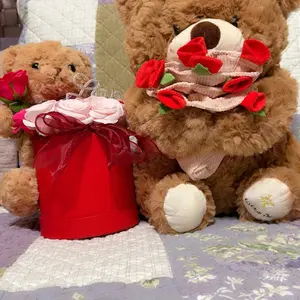 【Incorporated Rose Bouquet】: Features a vibrant red rose bouquet, adding a romantic touch that differentiates it from standard stuffed toys.