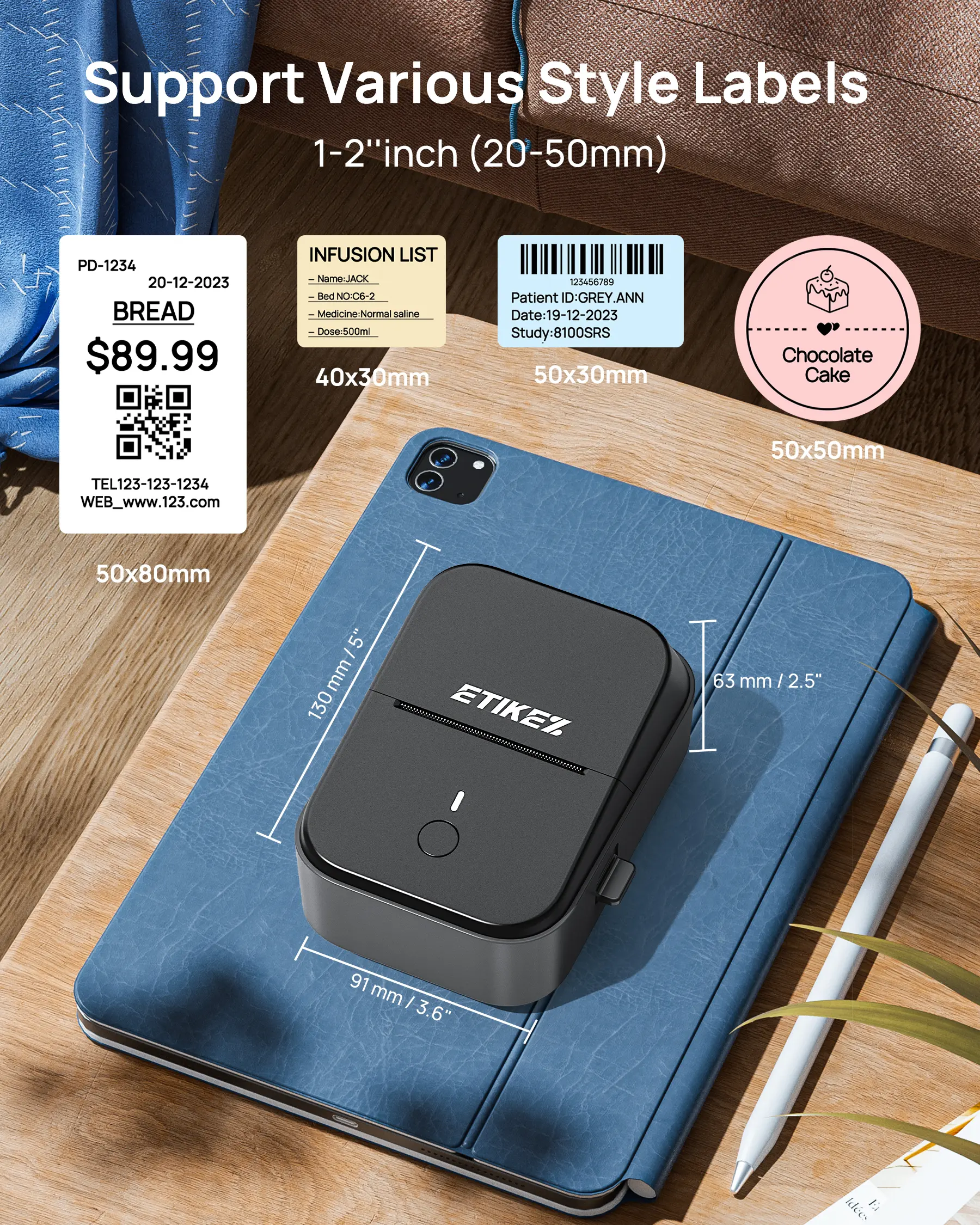 ·Premium Thermal Printing Quality: ETIKEZ label maker with BPA-Free Direct Thermal Technology. Equipped with high-speed chips and 203 DPI, you can enjoy high-definition without relying on ink or toner. This label maker machine with tape supports label widths from 1"-2" and includes a 40x30mm label tape. Note: Adjust the paper slot to secure the tape according to label size for precise alignment