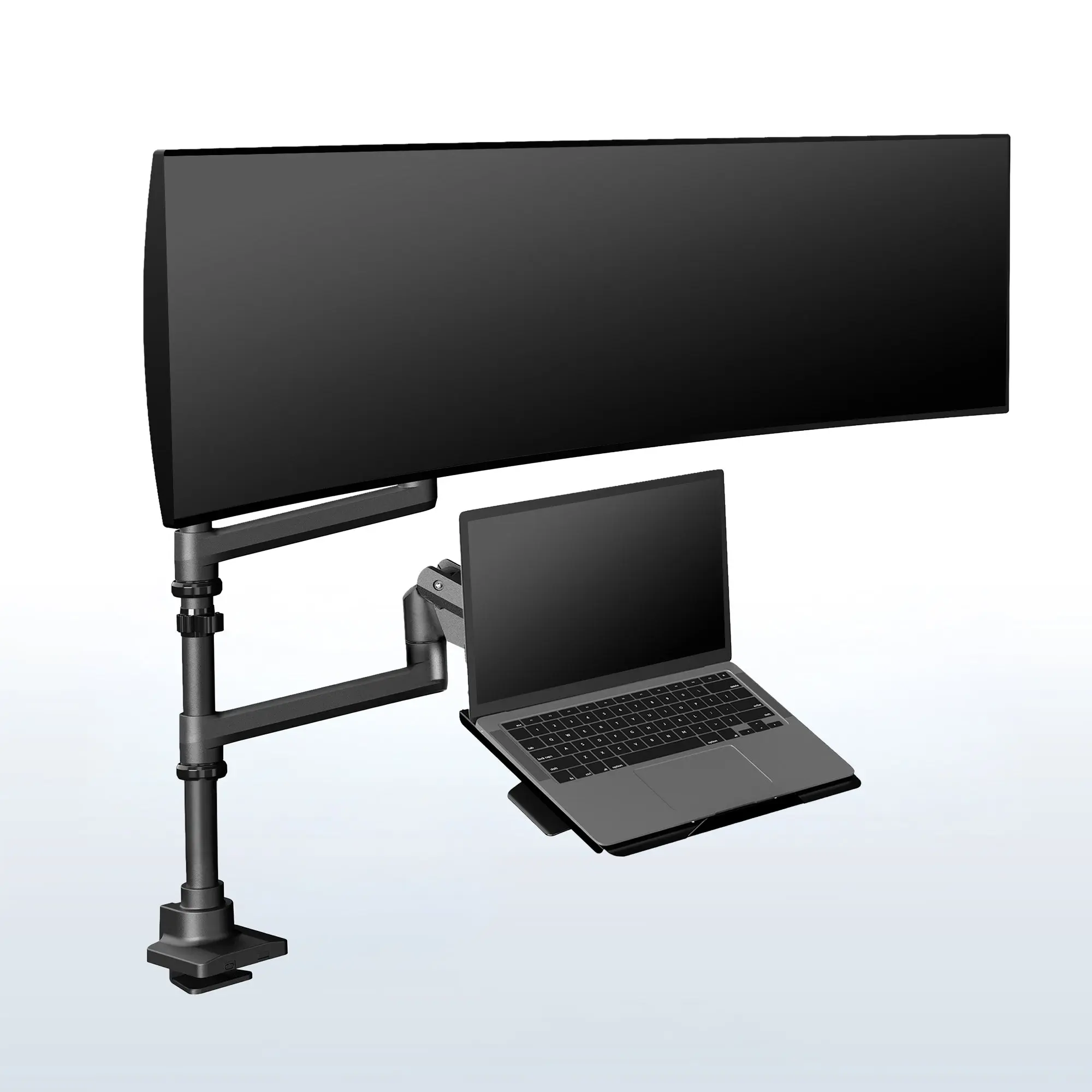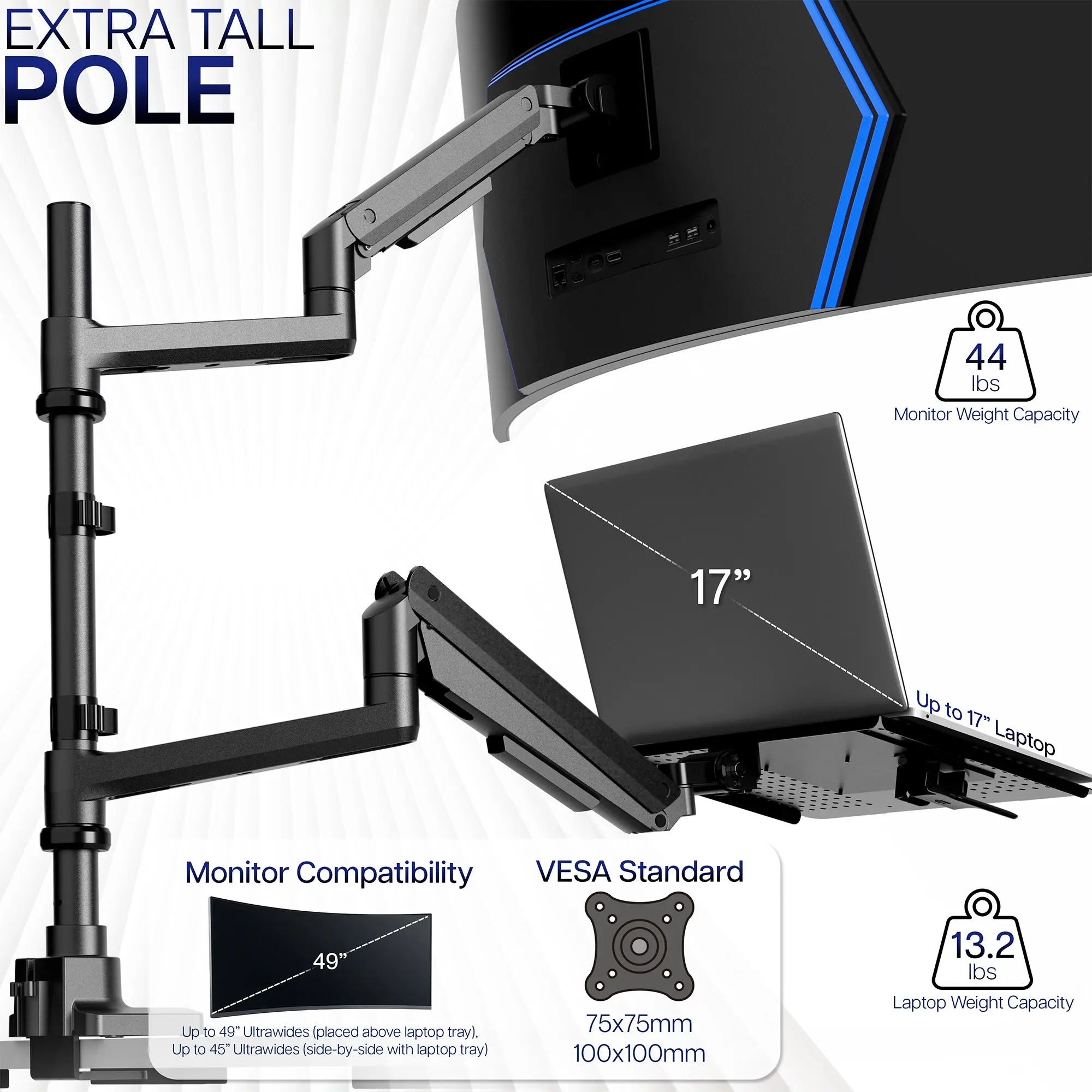 Pneumatic Arm Ultrawide Monitor and Laptop Extra Tall Desk Mount - Up to 49" Screens, 17" Laptops