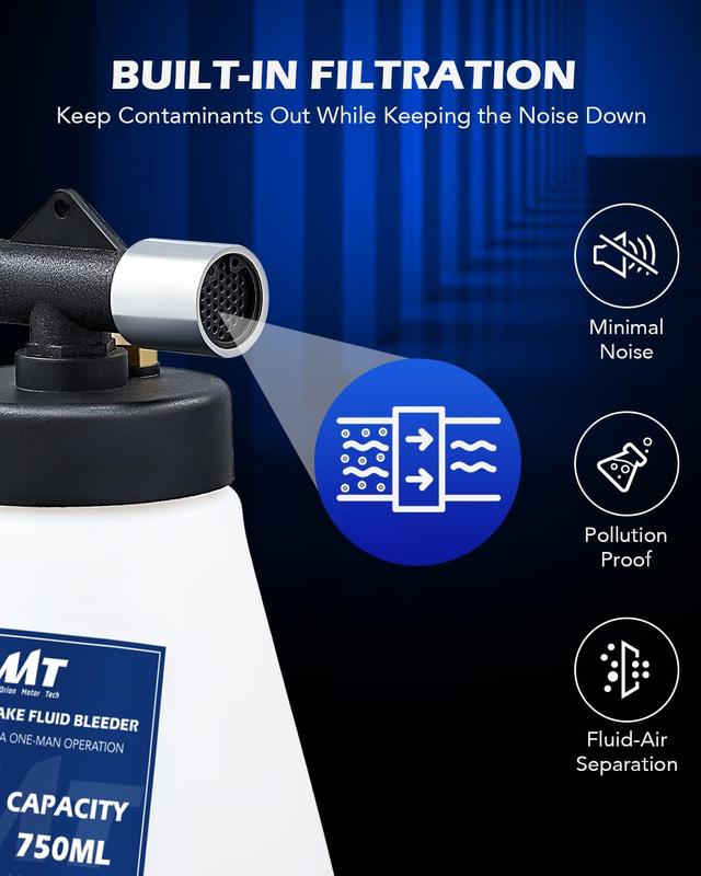 This Orion Motor Tech brake fluid bleeder kit lets you quickly bleed old fluid and air from your brake lines into its 0.8-quart reservoir without need for extra help