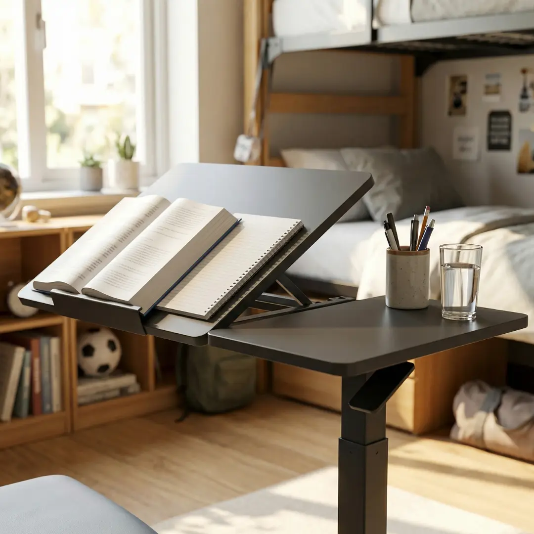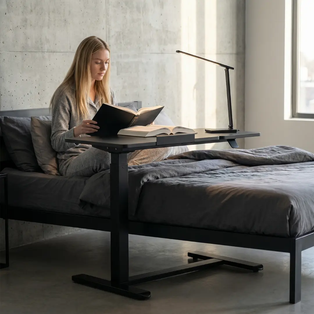 Overbed Bedside Table with Wheels, Adjustable Hospital & Home Use Bed Table, Rolling Laptop Table, Mobile Standing Desk
