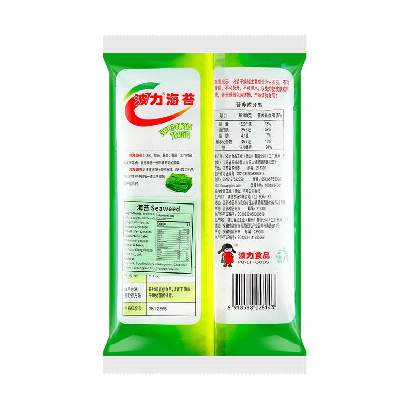5. 2 Pack PO-LI FOODS Roasted Seaweed Snacks - Classic Childhood Favorite, Savory Nori Crisps (11.2g/bag)