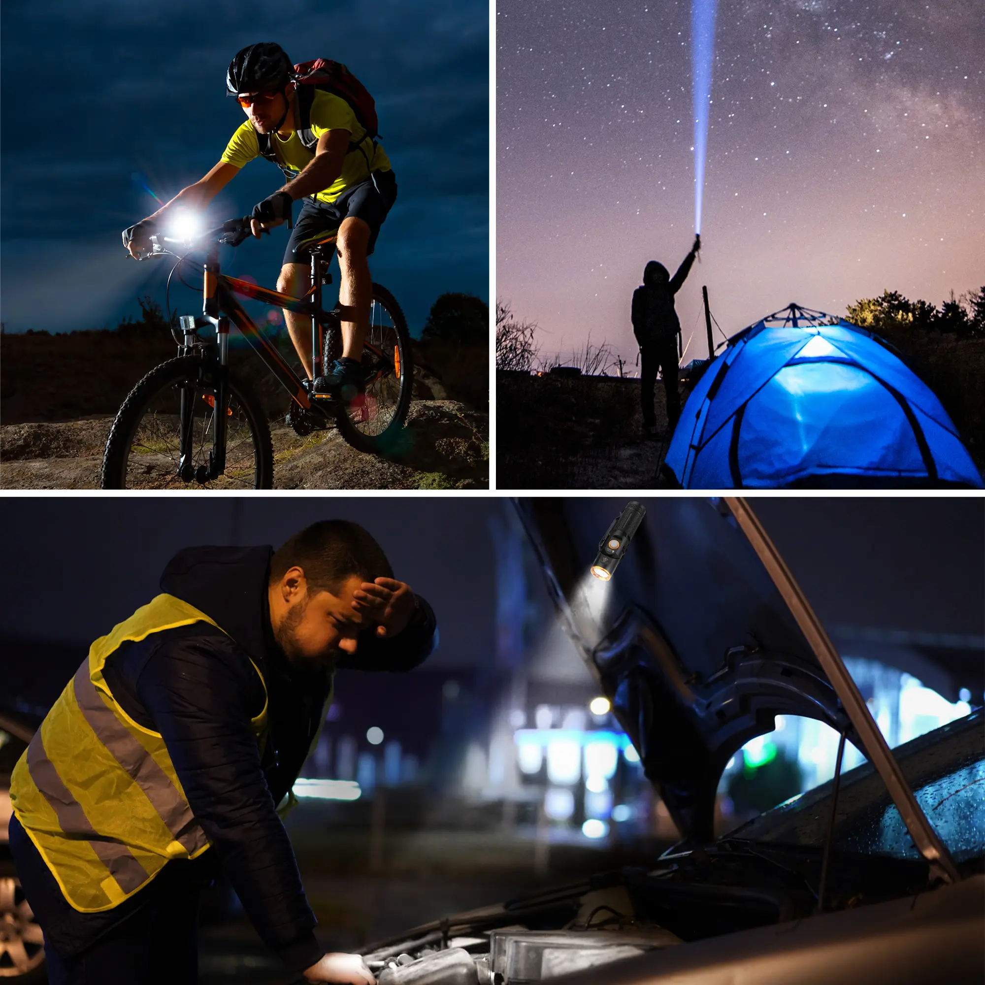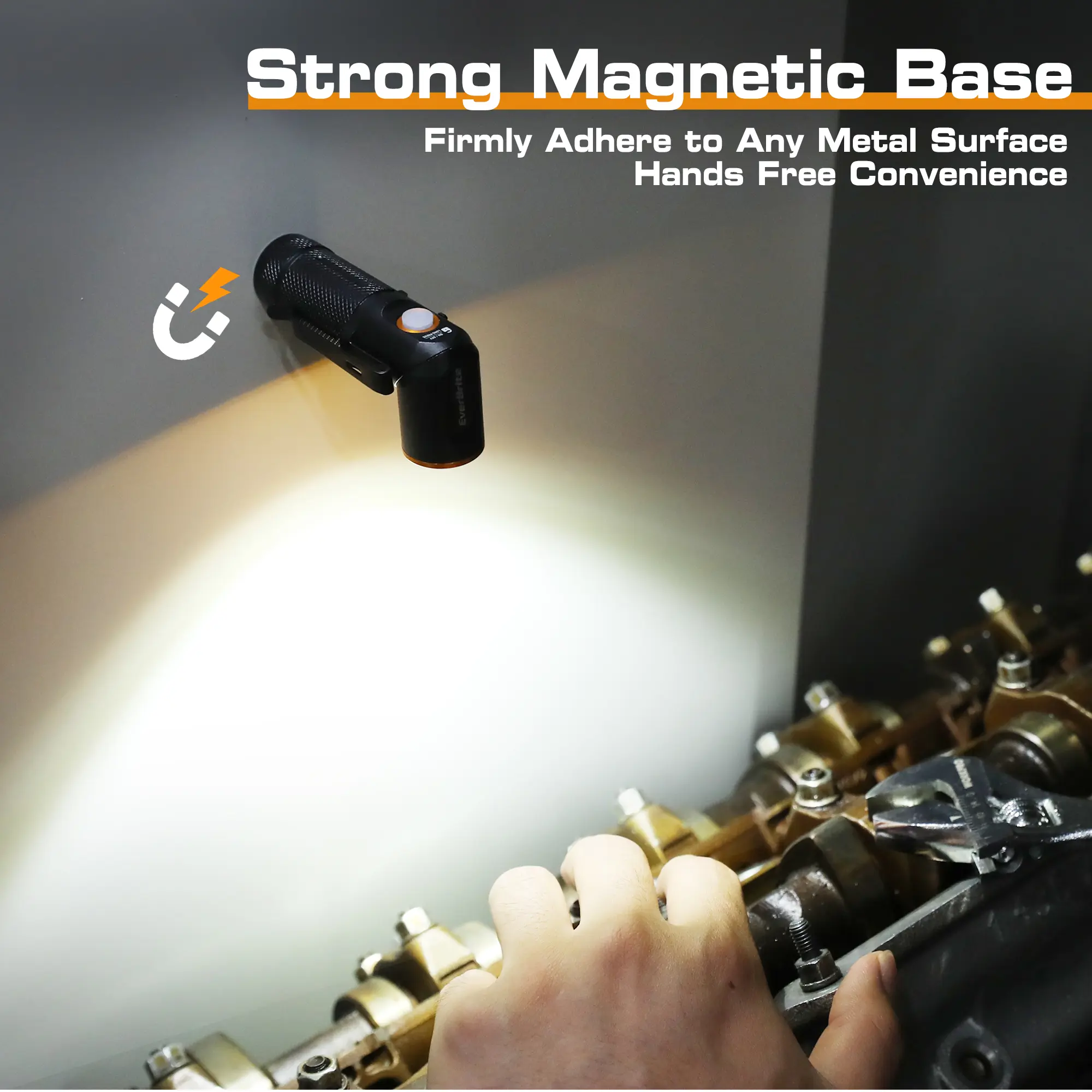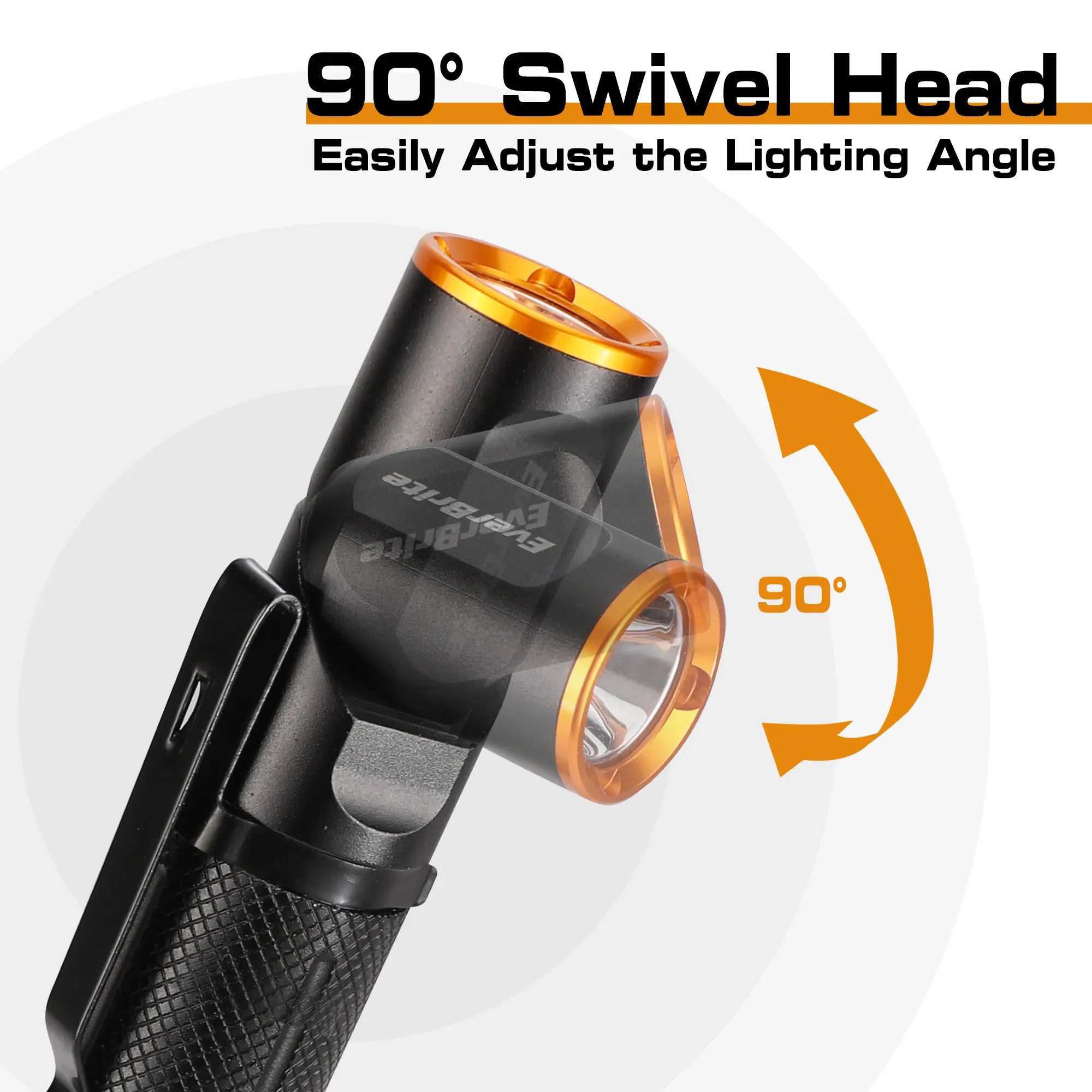 ·𝐌𝐮𝐥𝐭𝐢𝐩𝐥𝐞 𝐀𝐩𝐩𝐥𝐢𝐜𝐚𝐭𝐢𝐨𝐧𝐬: Whether it's hiking, camping, fishing, auto repair, dog walking, night running, or some emergency situations, EverBrite 90-degree rechargeable flashlight is your perfect choice
