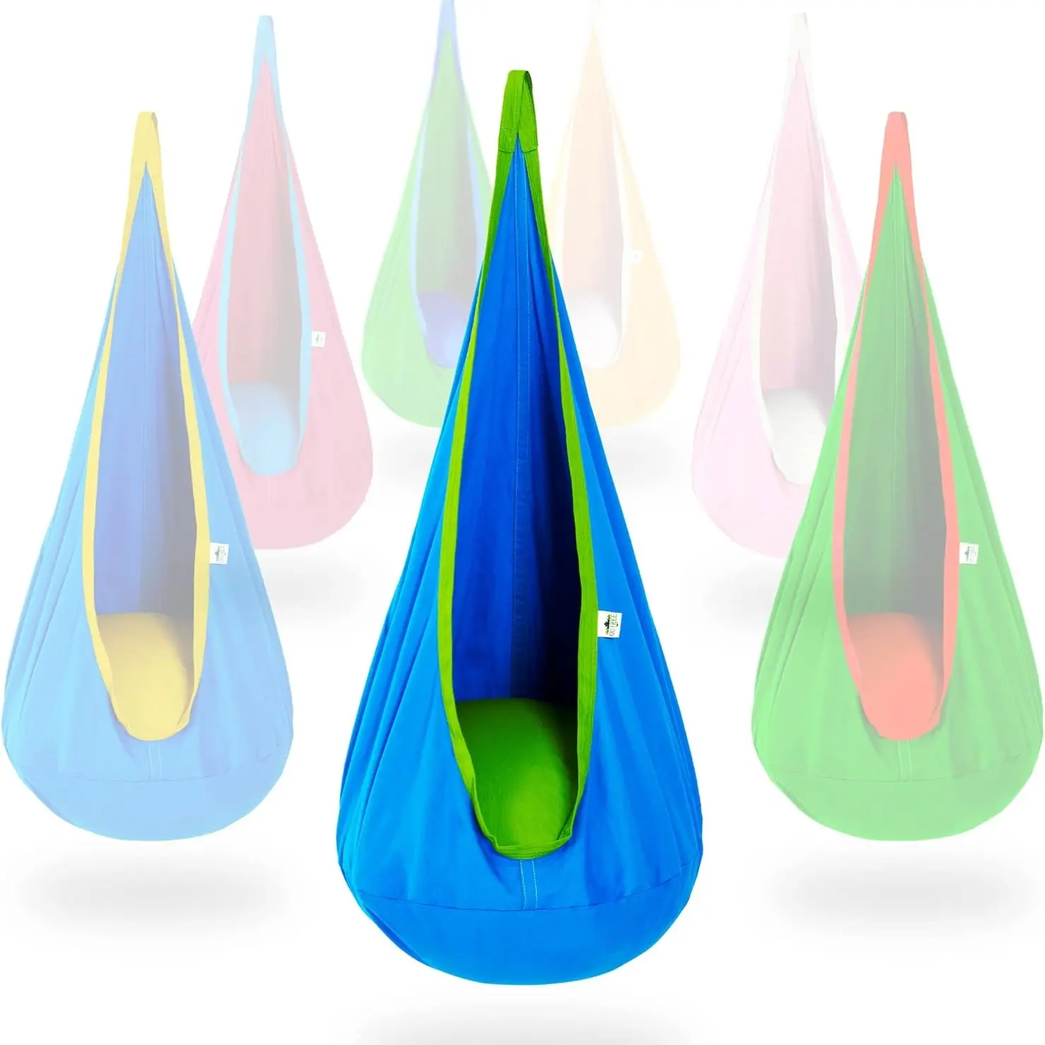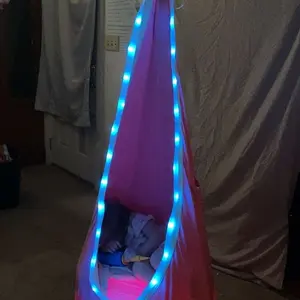 This hanging hammock swing comes with a pod swing, inflatable pillow, air pump, and accessories. The complete parts make installation simple, offering various hanging options. The swing supports up to 100 pounds, ensuring your child's safety. It's an ideal toy that gives kids a sense of ownership and keeps their room bright at night.