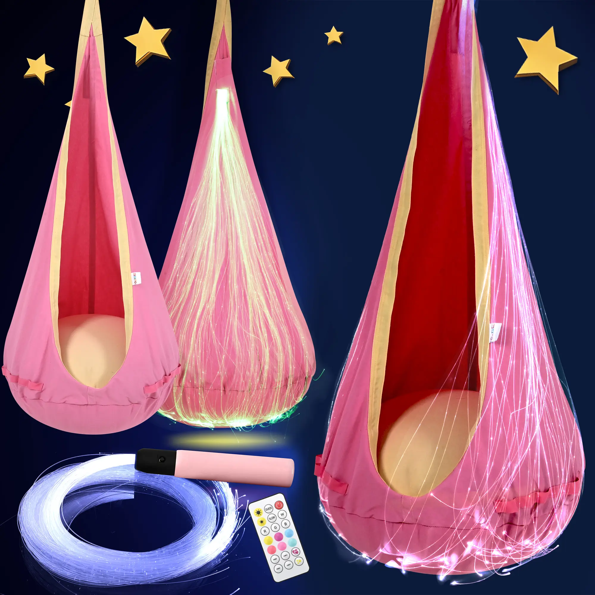 The OUTREE Kids Pod Swing is crafted from premium nylon, ensuring comfort and safety. Its unique side pocket design allows kids to store small toys, creating a cozy relaxation spot. Perfect for children aged 3+ years, this swing offers a sensory experience with its adjustable brightness and 4 flashing modes. Enjoy the vibrant, colorful look that fits any home setting.