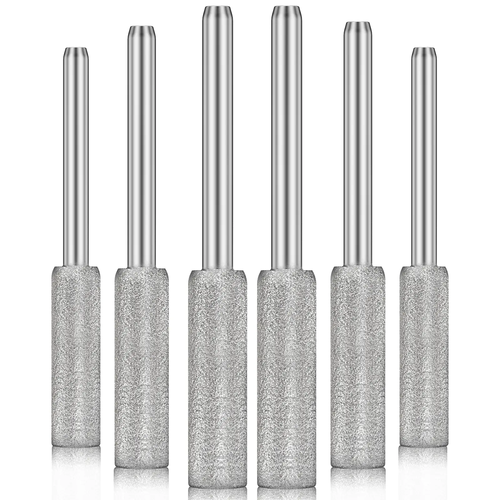 [Product Size] Grinding head length (approx): 7/8" (22.5mm). Grinding head diameter (approx): 7/32" (5.5mm) Shank diameter (approx): 1/8" (3mm). Overall length (approx.) is 1-3/4" (45.5mm). You will get 6 burr bits, they can meet your different needs for a long time.