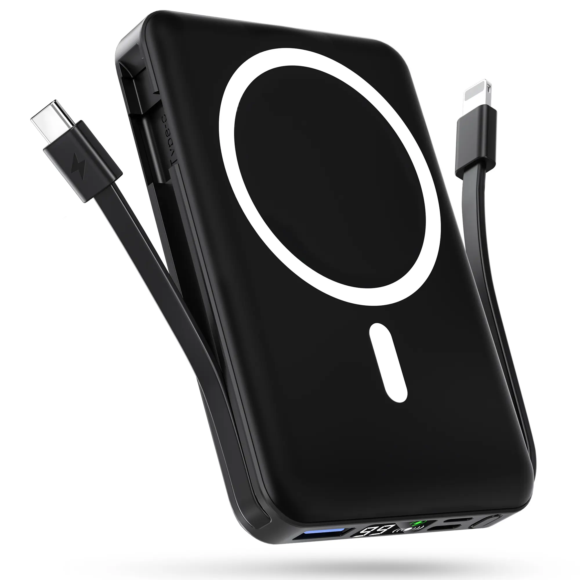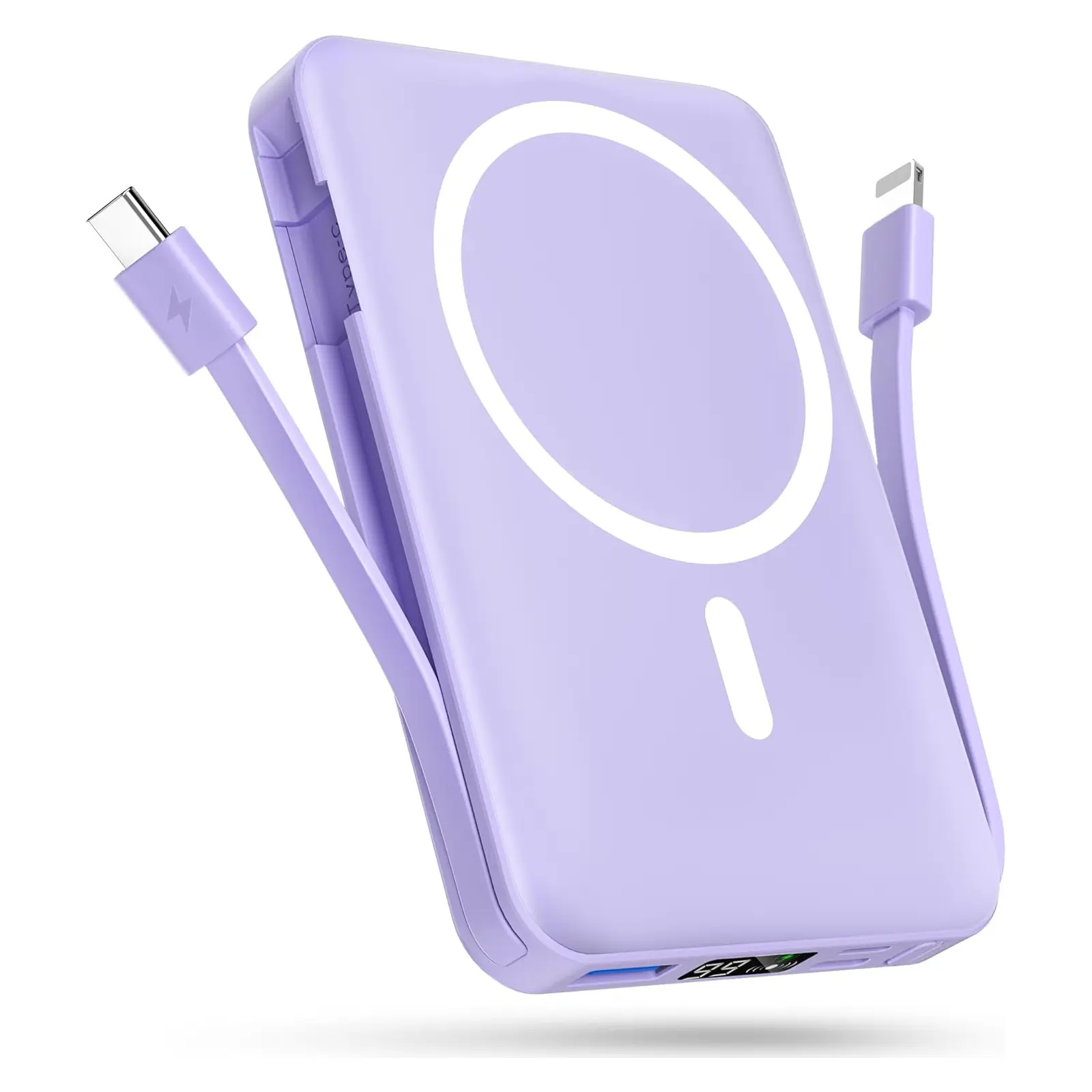 ·Powerful Compatibility Power Bank: This iphone battery pack has built-in Lighting & USB C charging cables, perfectly compatible with iPhone or Type-C devices. MagSafe for iPhone 17/16/15/14/13/12 all series; (Note: Need to be aligned with the magnetic suction, without cases or with magnetic cases)