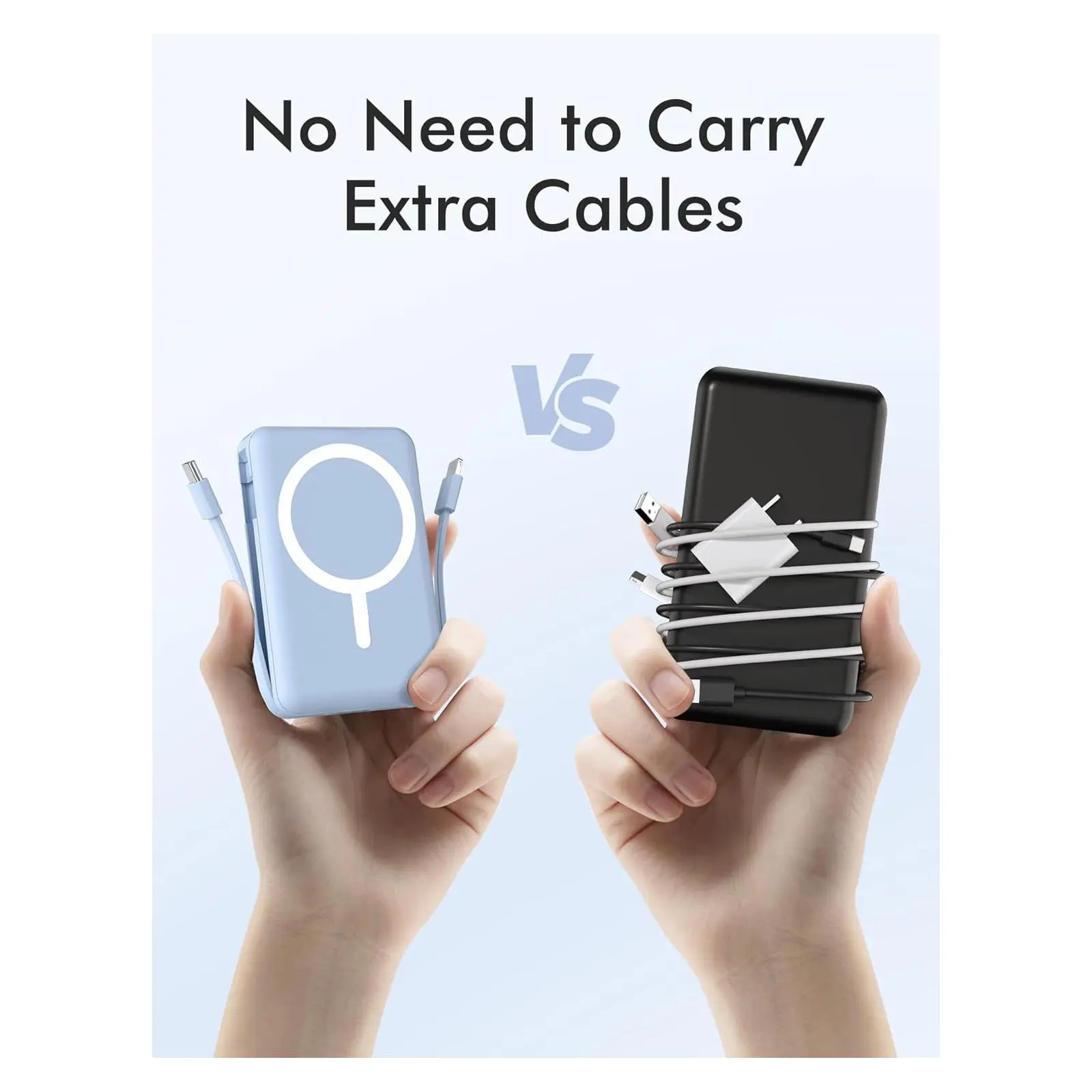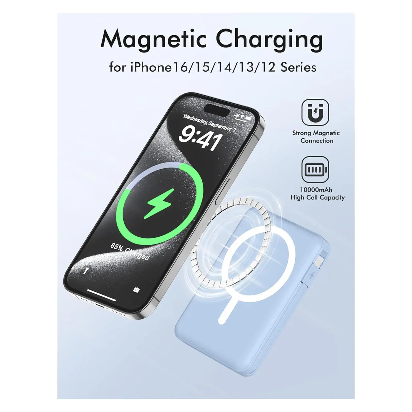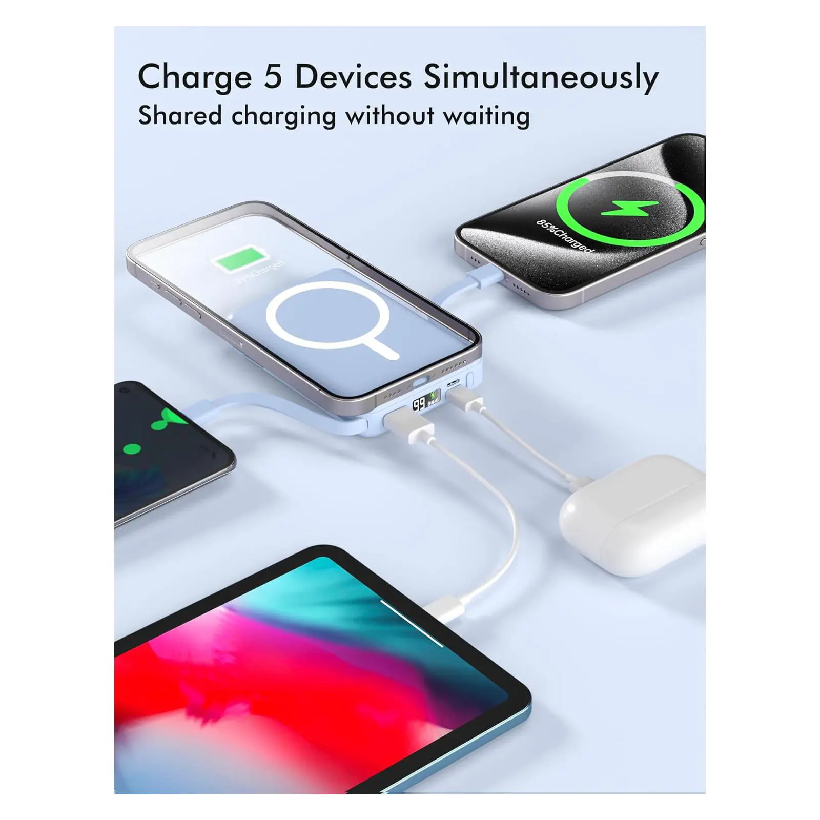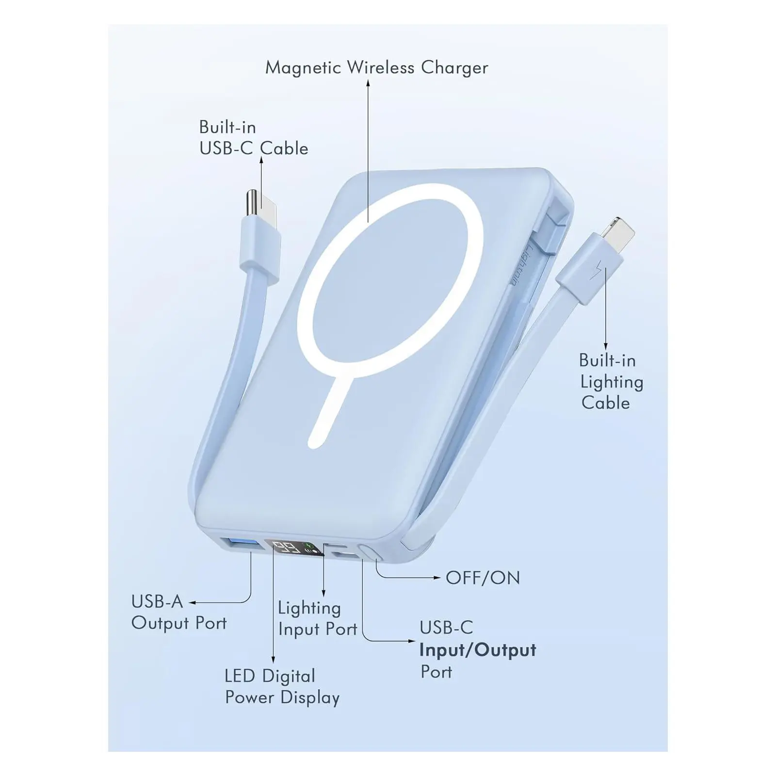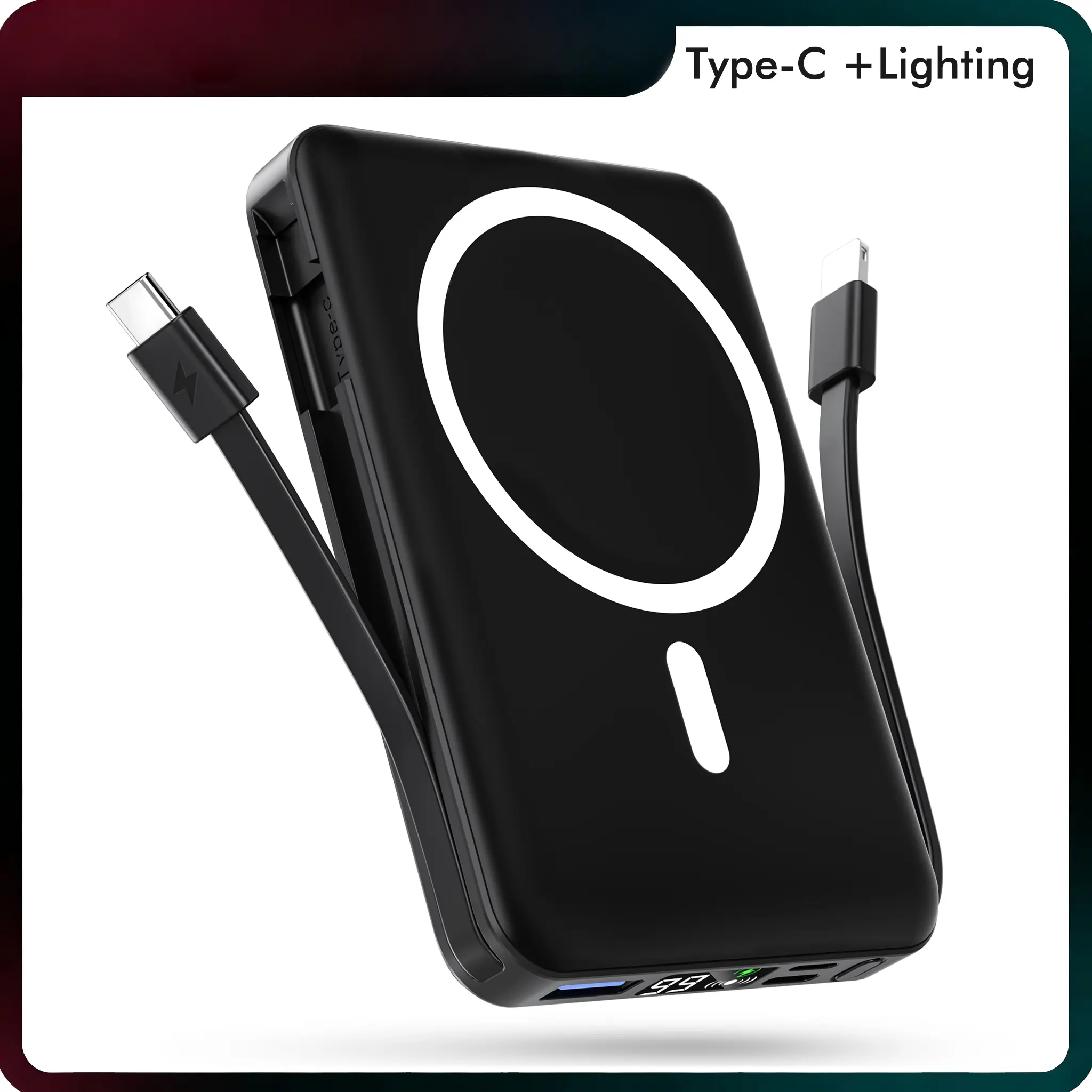 ·Powerful Compatibility Power Bank: This for MagSafe battery pack has built-in Lighting & USB C charging cables, perfectly compatible with iPhone or Type-C devices. for iPhone 17/16/15/14/13/12 all series; (Note: Need to be aligned with the magnetic suction, without cases or with magnetic cases)