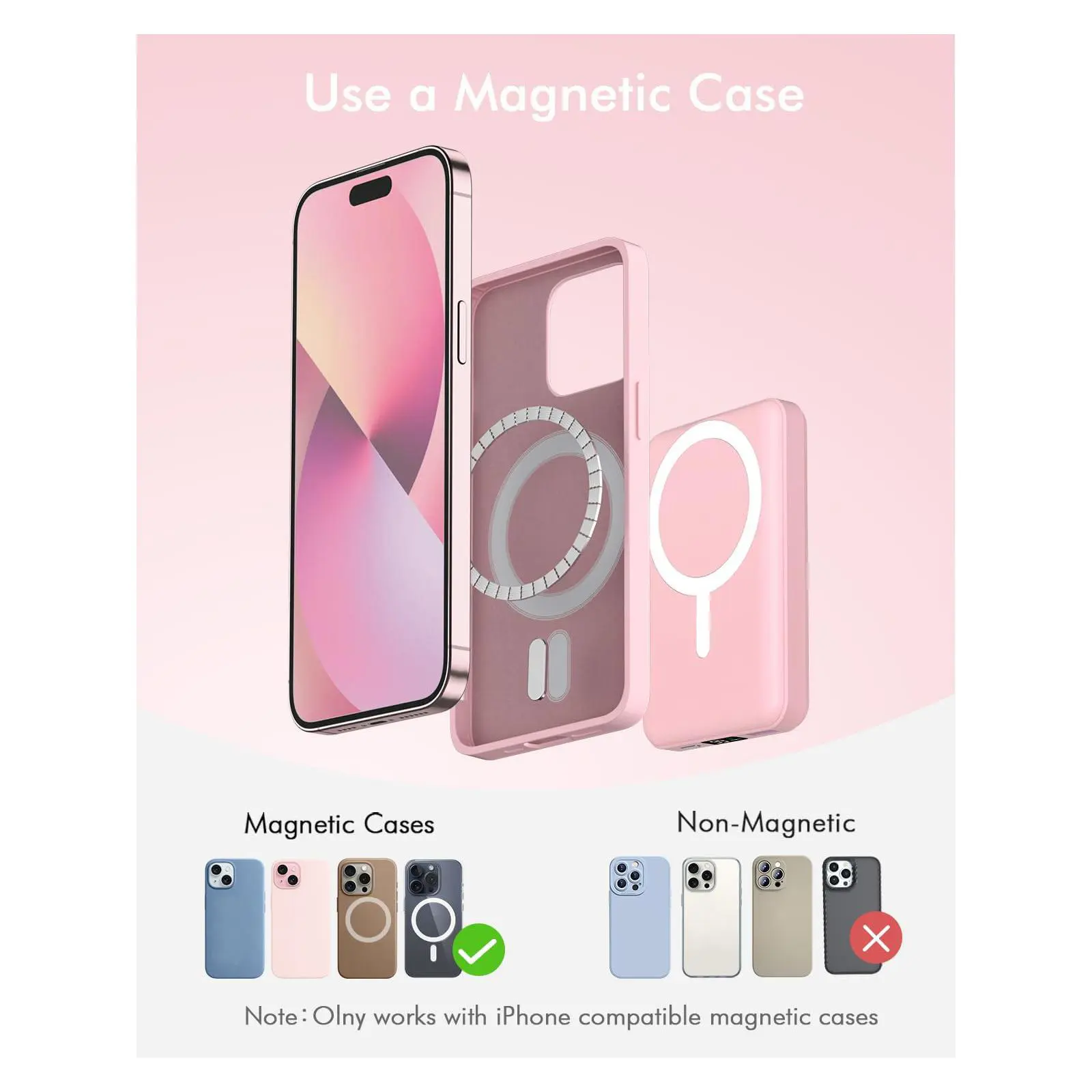 Ever run out of battery right when you need your iPhone most? The Podoru Magnetic Power Bank is here to save your day with a powerful 10000mAh battery that can charge your iPhone 12 through 17 series multiple times. Its strong magnetic connection keeps your phone securely attached without blocking the camera, so snapping pics while charging is no problem. Fast wireless charging delivers up to 15W, while USB-C and USB-A ports let you juice up three devices at once. Safety is a top priority with built-in protections against overheating, overcharging, and short circuits, plus a soft silicone exterior to protect your phone. Inside the box, you get the magnetic wireless power bank, a USB Type-C charging cable, and an instruction manual to get started quickly. Whether you're out and about or just need extra juice during a busy day, this portable charger blends convenience, speed, and safety in one sleek package. Grab yours now and keep your devices powered wherever life takes you!
