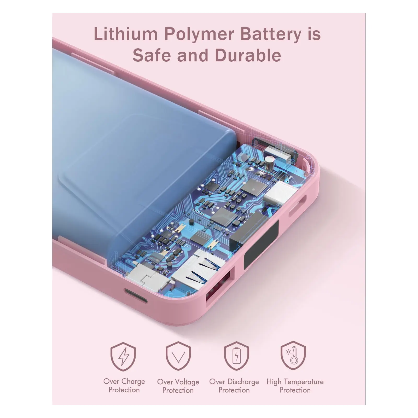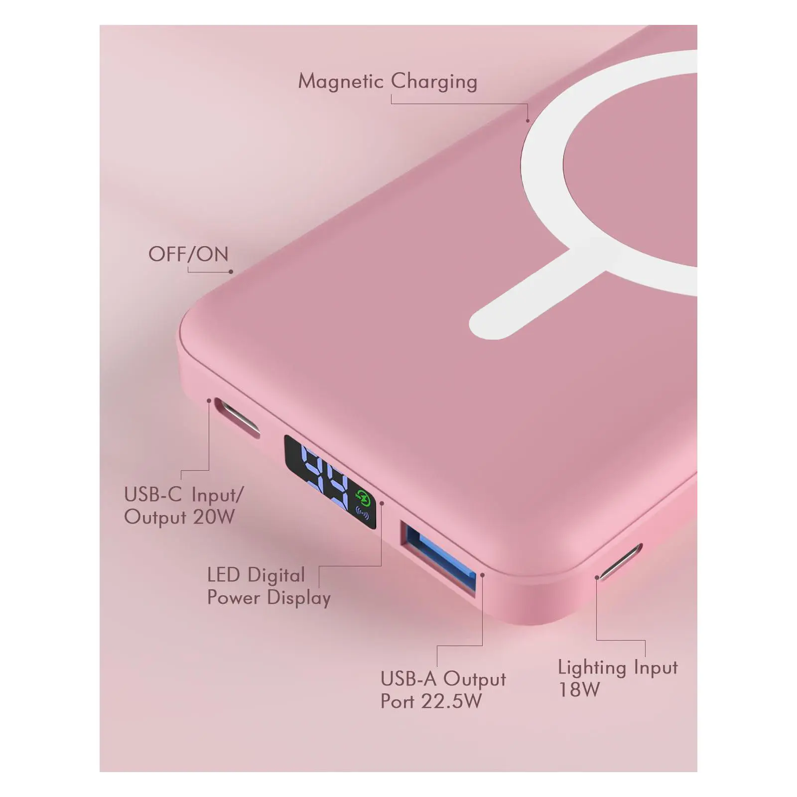 ·3 in 1 Fast Charging Power Bank: Magnetic portable power bank supports 15W Max wireless charging, 22.5W max USB-A PD output and max 20W USB-C output; The wireless charger can charge 3 Devices at the same time.