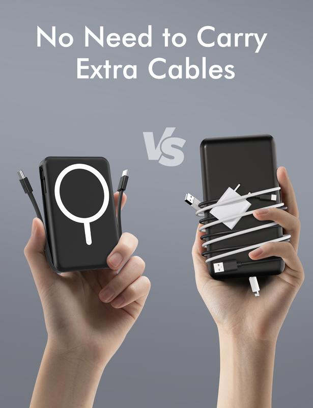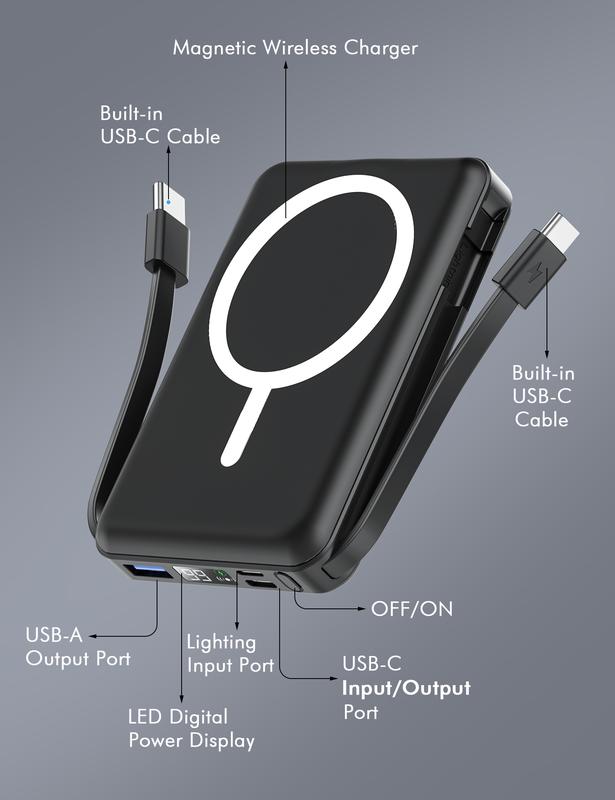 Powerful Compatibility Magnetic Power Bank: This battery pack has built-in USB C charging cables, perfectly compatible with iPhone or Type-C devices. Our portable charger attaches directly to the back of your Smartphone. Supports the following models: for iphone 15 and above model all series; (Note: Need to be aligned with the magnetic suction, without cases or with magnetic cases)