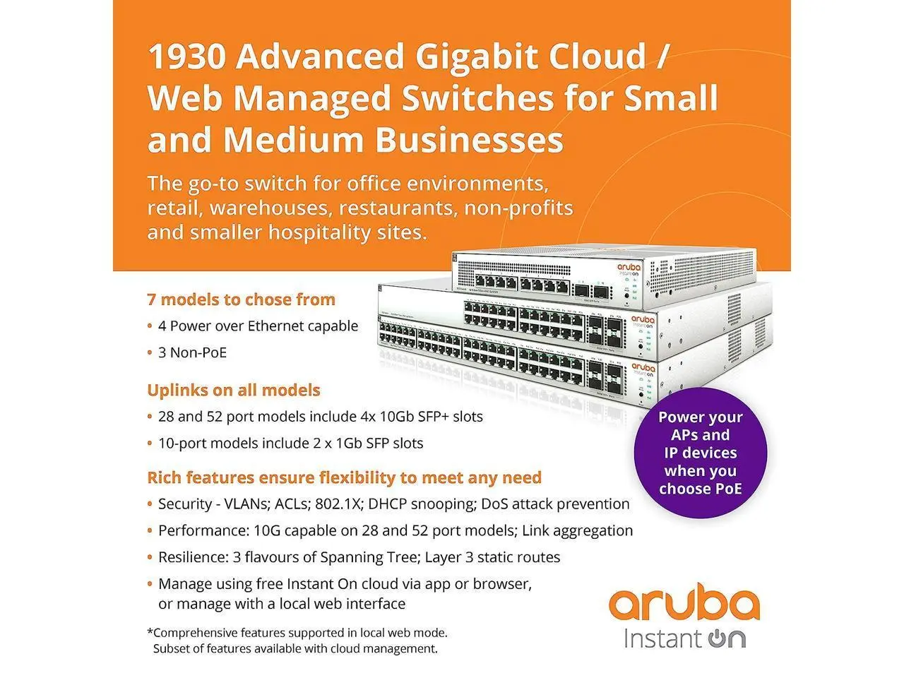 5. Aruba Instant On 1930 8-Port PoE Gb Ethernet 8xGE PoE (124W), 2X 1G SFP, L2+ Smart Switch US Cord (JL681A#ABA)