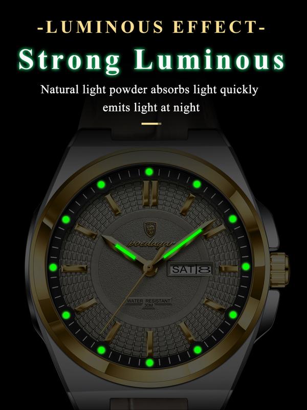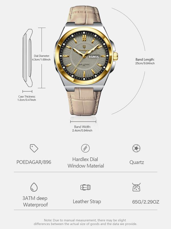 POEDAGAR Luxury Original Man Wristwatch Luminous Date Week Quartz Men's Watches High Quality Casual Leather Men Watch High End Watch