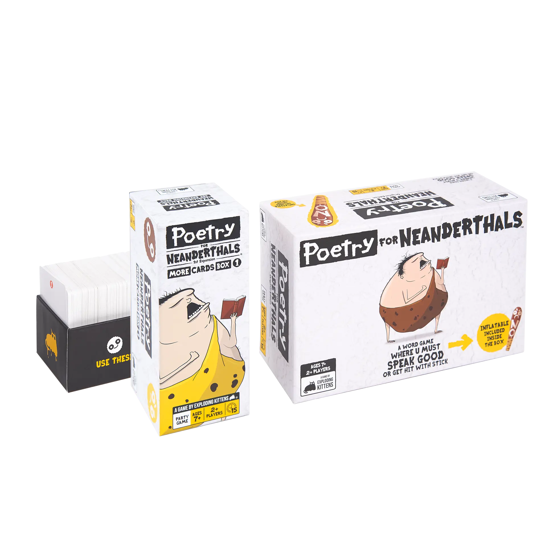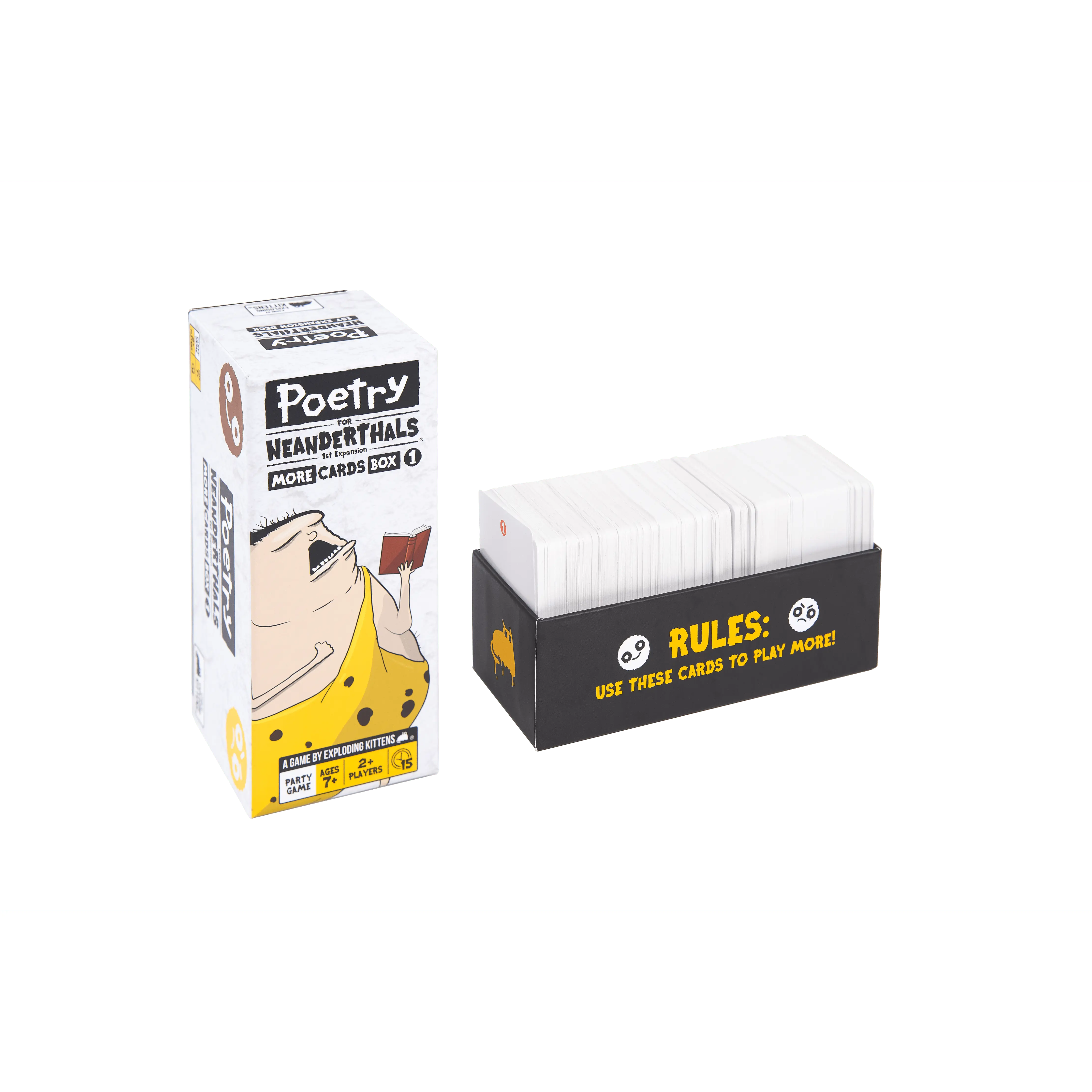 This Poetry for Neanderthals Bundle includes the original game and the More Cards Box 1 Expansion, offering everything you need for endless laughs and word-guessing mayhem.