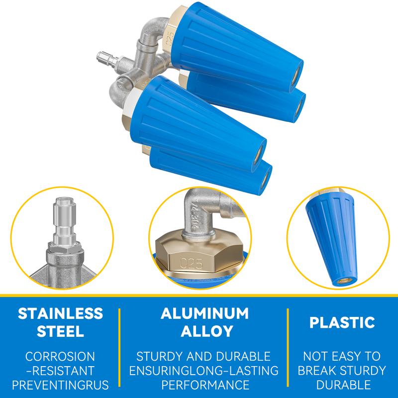·Premium Quality Materials: Pressure washer turbo nozzle is made of high quality brass with a 2.5 orifice, corrosion-resistant, and can withstand temperatures up to 212°F/100°C, ensuring resistant even under extreme conditions.