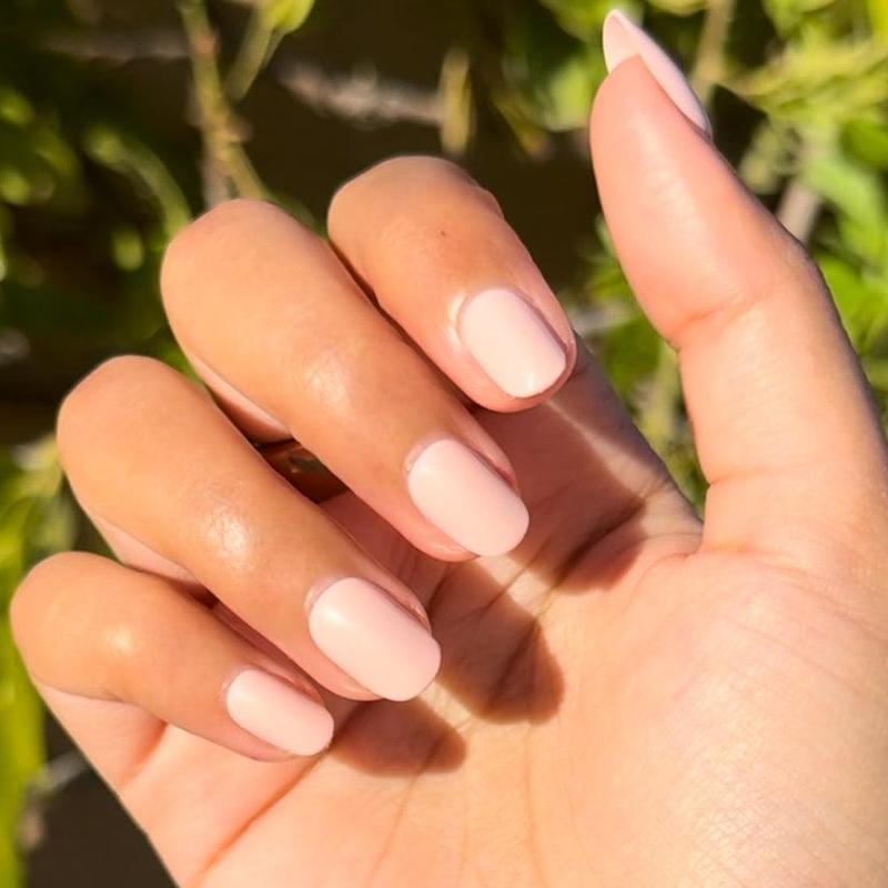 A soft ballerina pink mani. “This easy pink neutral is always on… point. See what I did there?” XO SGT