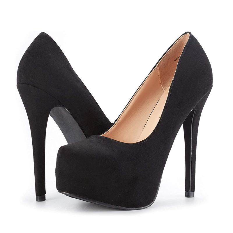 Stand-out, knock-out, a flat-out bombshell in these high-heel platform pumps. Seriously, dress to impress and dominate the scene. Our high heel platform pumps slide effortlessly into the "The Best Pair Of Heels I Own" category and will stay there. Five inches of heel and instant glory. Take our platform pump shoes adorned in vegan leather along for the ride.