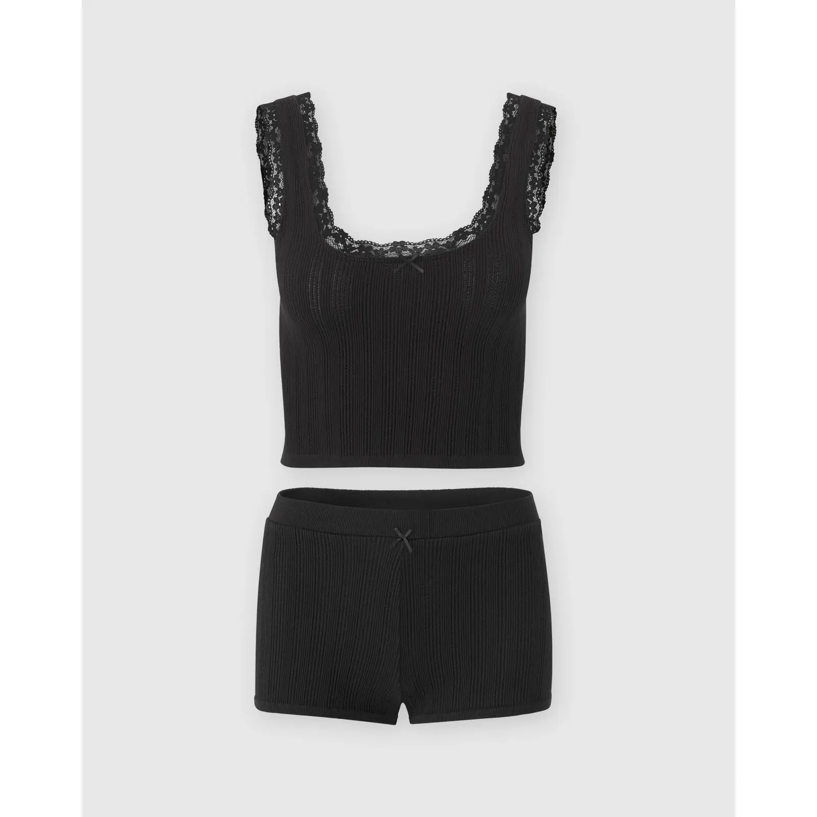 Super cute, soft set but as far as it being black the only black part of this outfit is the lace. The fabric itself is more of a dark brown. Which is disappointing because I wanted the entire set to be black and that’s what I was expecting. Not sure if I got a bad batch or if that’s just how it is.