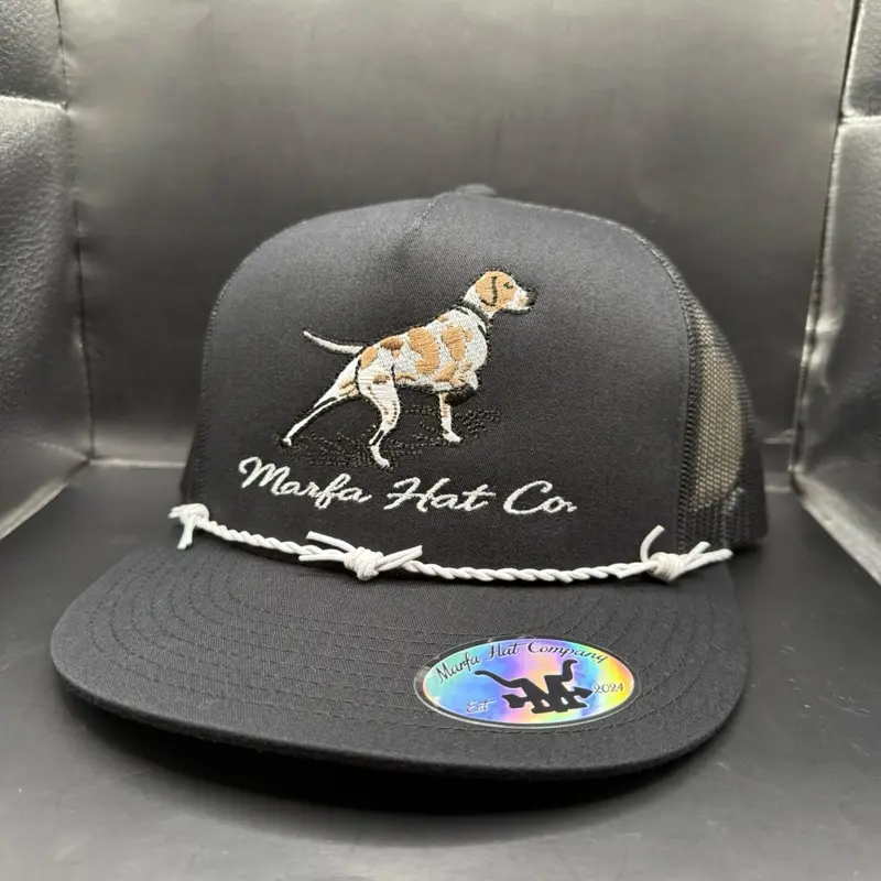 The Pointer Hat is a trucker cap featuring an embroidered dog design. It includes an adjustable snapback for a customizable fit. Perfect for those who love a casual, stylish look.