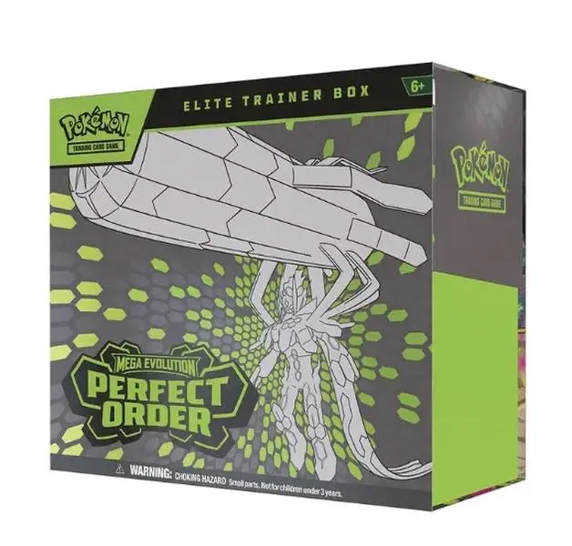 Pokémon Elite Trainer Box Mega Evolution Perfect Order ETB with 9 Booster Packs 1 Tyrunt Promo Card 65 Sleeves 40 Energy Cards