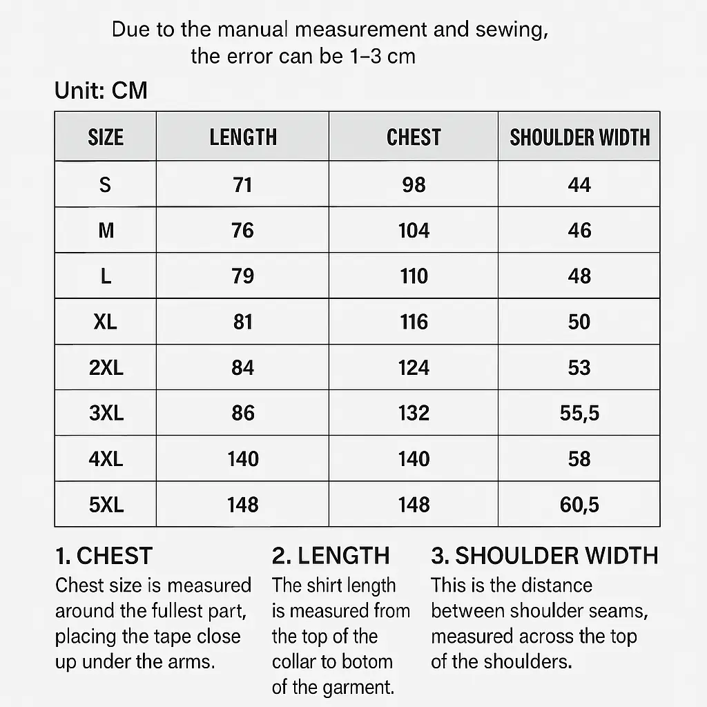 📏 Sizes for Everyone – Available from S to 3XL. Whether you like it snug or loose, we’ve got your fit. (Pro tip: check the size chart before ordering!)