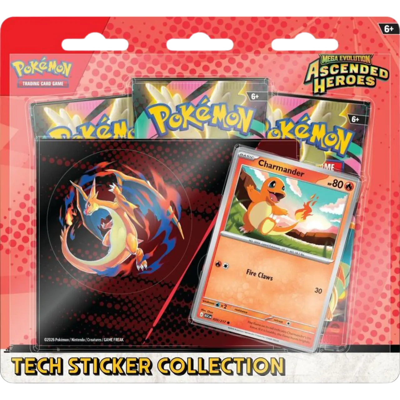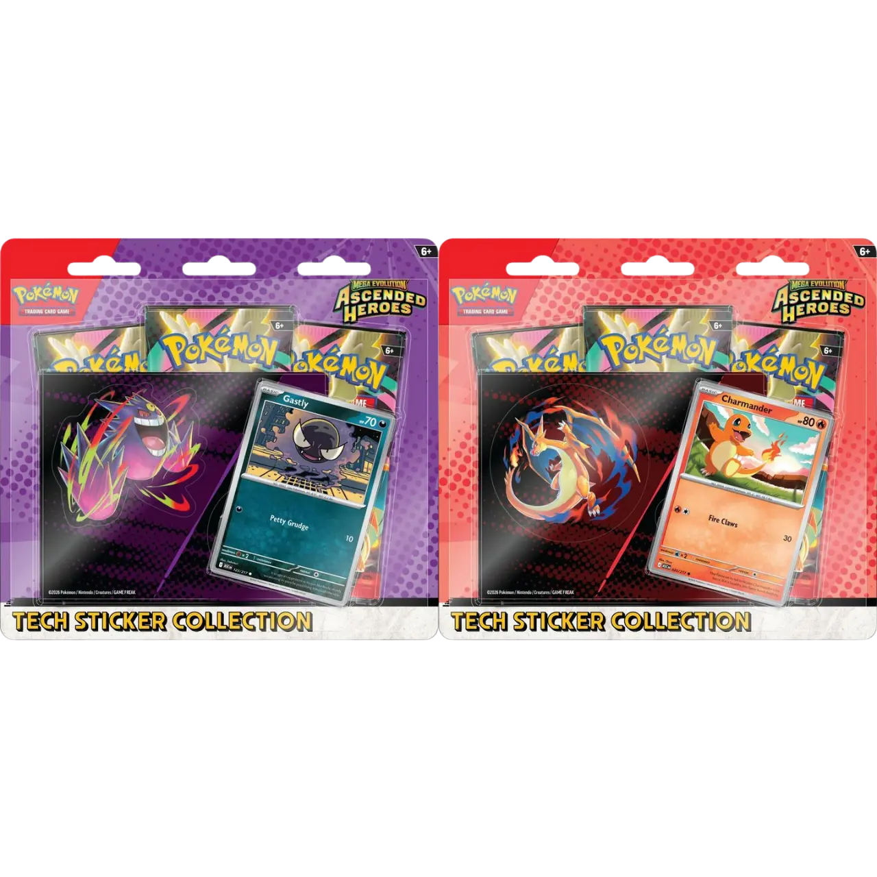 Mega Evolve Your Sticker Game! Pokémon from the Kanto region are ascending to greatness—as both promo cards and tech stickers! In this collection, you’ll find Charmander or Gastly as a foil promo card, plus a sheet of tech stickers featuring Charmander and Mega Charizard Y or Gastly and Mega Gengar. Top it all off with even more Pokémon inside three booster packs from the special Mega Evolution—Ascended Heroes expansion! The Pokémon TCG: Mega Evolution—Ascended Heroes Tech Sticker Collection includes: • 1 foil promo card featuring Charmander or Gastly • 1 tech sticker sheet (featuring Charmander and Mega Charizard Y or Gastly and Mega Gengar) • 3 Pokémon TCG: Mega Evolution—Ascended Heroes booster packs
