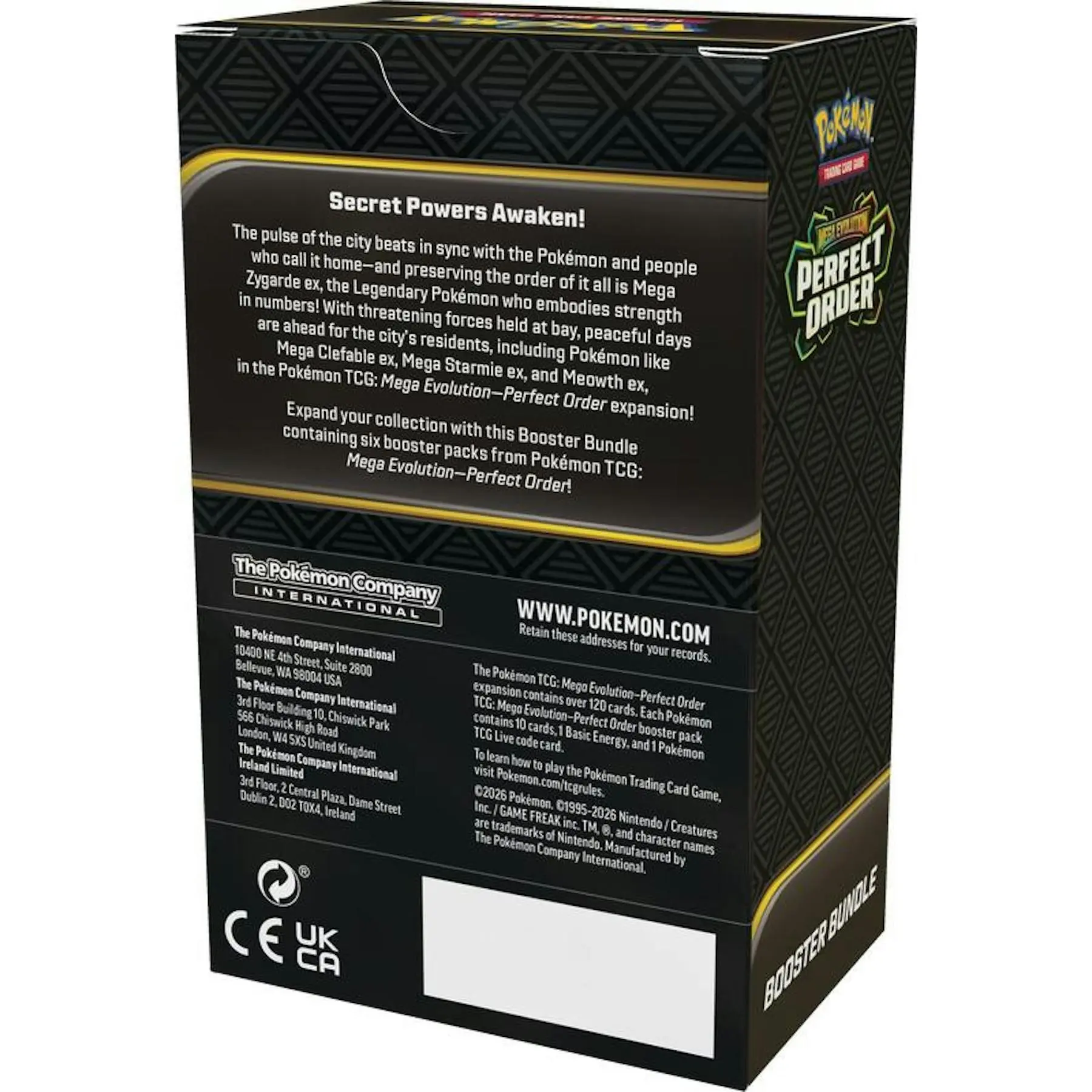 The pulse of the city beats in sync with the Pokemon and people who call it home-and preserving the order of it all is Mega Zygarde ex, the Legendary Pokemon who embodies strength in numbers! With threatening forces held at bay, peaceful days are ahead for the city's residents, including Pokemon like Mega Clefable ex, Mega Starmie ex, and Meowth ex, in the Pokemon TCG: Mega Evolution-Perfect Order expansion!