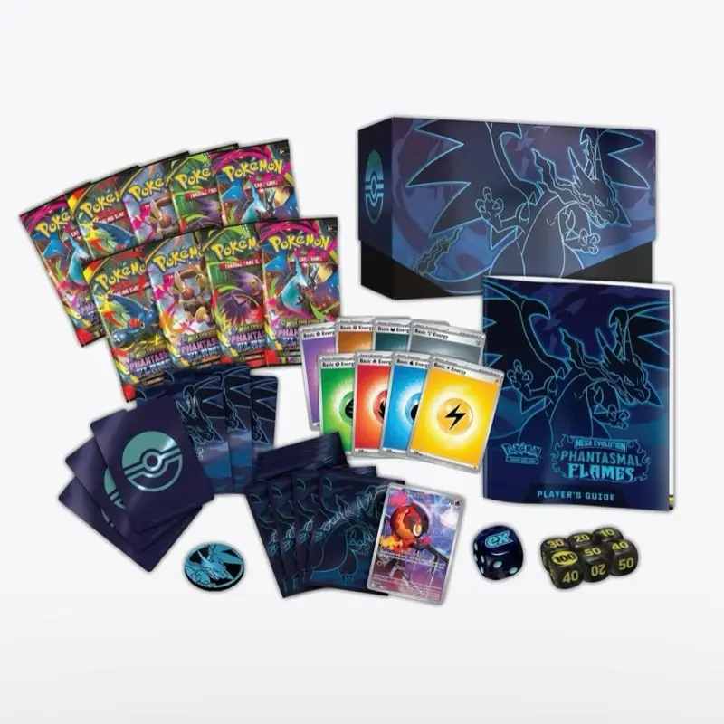 The Pokémon TCG: Mega Evolution—Phantasmal Flames Elite Trainer Box Includes