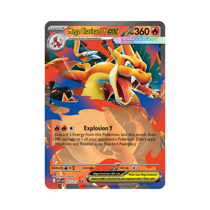 Marvel at the awesome potential as Mega Dragonite ex takes flight, leading a gathering of all-star PokΓ©mon to battle! Trainer’s PokΓ©mon and Stellar Tera PokΓ©mon ex join returning and newly discovered Mega Evolution PokΓ©mon ex, including some with special artwork showing off their biggest and boldest attacks. Celebrate the stars of Scarlet & Violet and the dawn of Mega Evolution with the PokΓ©mon TCG: Mega Evolutionβ€”Ascended Heroes expansion!