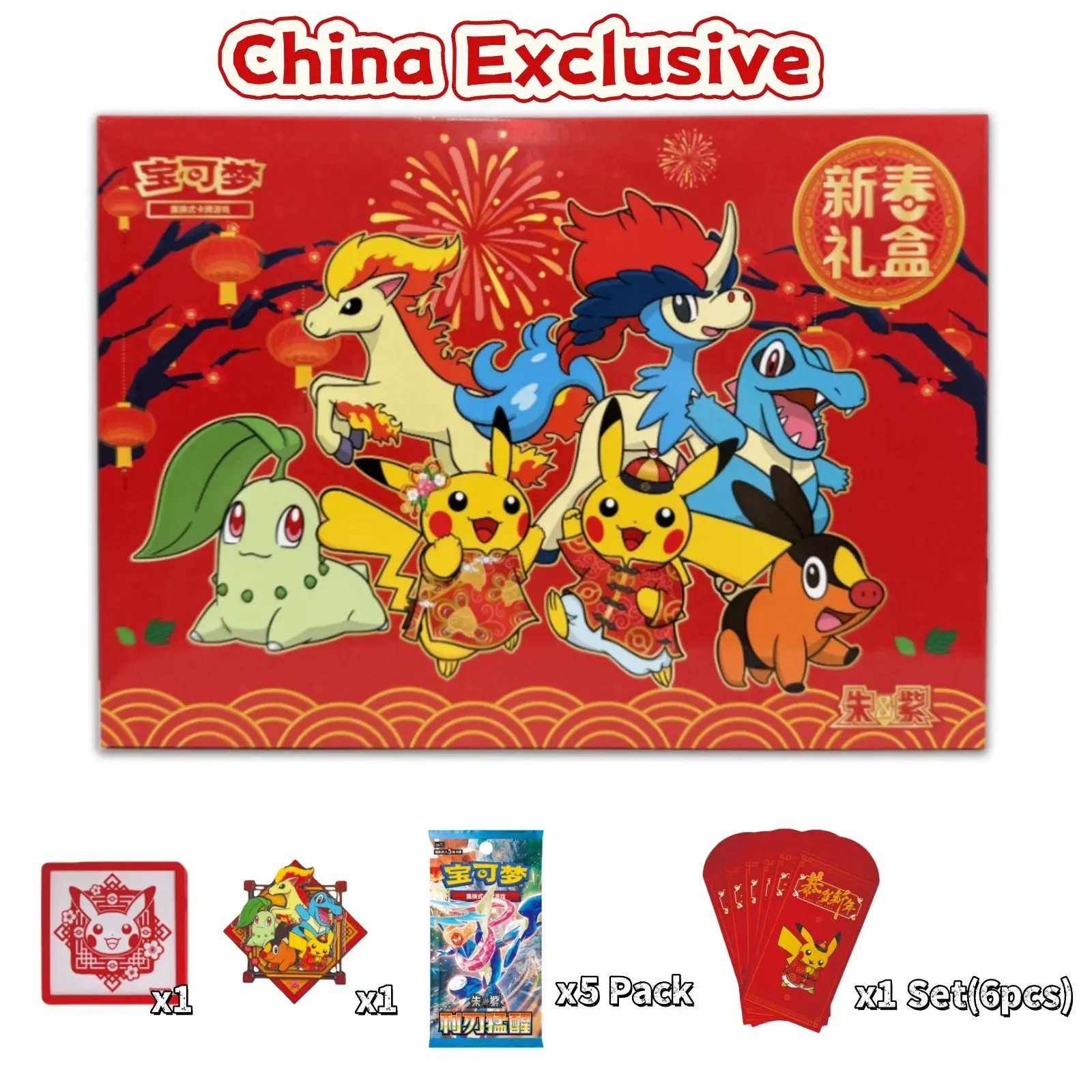 Celebrate the 2026 Lunar New Year with the Pokémon TCG Simplified Chinese Exclusive New Year Gift Box—a sealed, limited-edition treasure for trainers worldwide! This rare S-Chinese exclusive blends festive joy with premium collectibles, featuring beloved Pokémon like Pikachu, Fuecoco, and Quaxly on the vibrant red-themed packaging . Inside the unopened, factory-sealed box, you’ll find exclusive New Year-themed merch: a cute Pokémon stamp, festive fridge magnet, and 6 lucky red envelopes to spread holiday cheer . Plus, dive into the thrill of collecting with special cards—look for sparkling holofoils and rare rarities marked with unique gem pack symbols, from ◆ to tiers Pokémon. As a limited-run release tied to the 2026 (Bingwu) Year, this gift box is a must-have for serious collectors and casual fans alike—don’t miss your chance to own a piece of Pokémon TCG history that’s only available in Simplified Chinese! Grab yours before they’re gone—perfect for gifting or upgrading your collection!