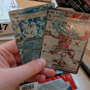 Welcome to the land of Kitakami, where people and Pokemon live harmoniously with nature. Folktales abound, but not all is as it seems... Uncover the mystery of the masked Legendary Pokemon Ogerpon, appearing as four fearsome types of Tera Pokemon ex, and team up with more newly discovered Pokemon, like Bloodmoon Ursaluna ex and Sinistcha ex. Growing in power, Greninja, Dragapult, and Magcargo dazzle as Tera Pokemon ex, and moreACE SPECcards round out the festivities in the Pokémon TCG:Scarlet & Violet—Twilight Masqueradeexpansion!