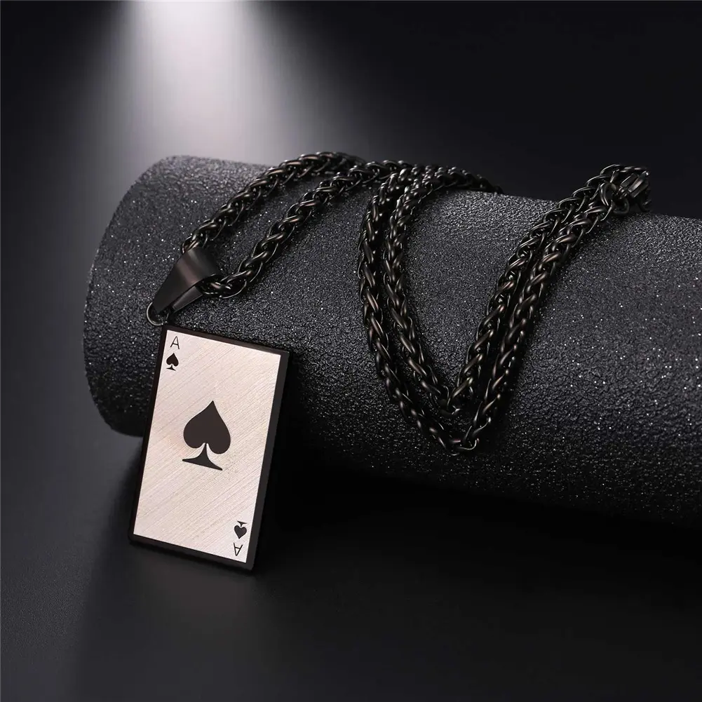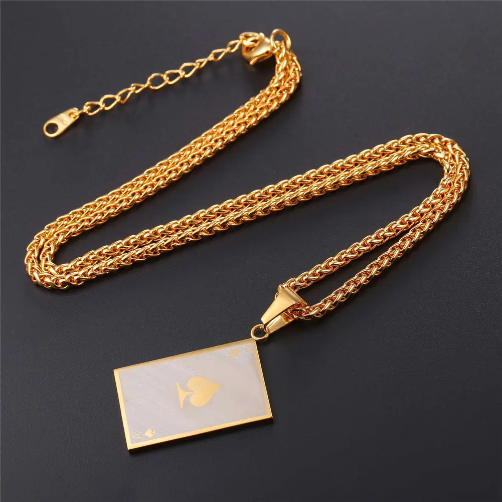 U7  Men's Card Poker Pendant Necklace Poker A Necklaces Wheat Chain Necklace Men Rock Hip Hop Jewelry
